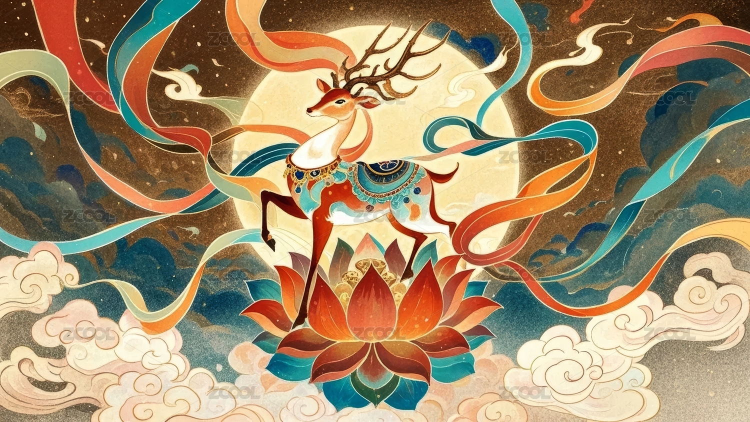 神鹿国潮插画场景