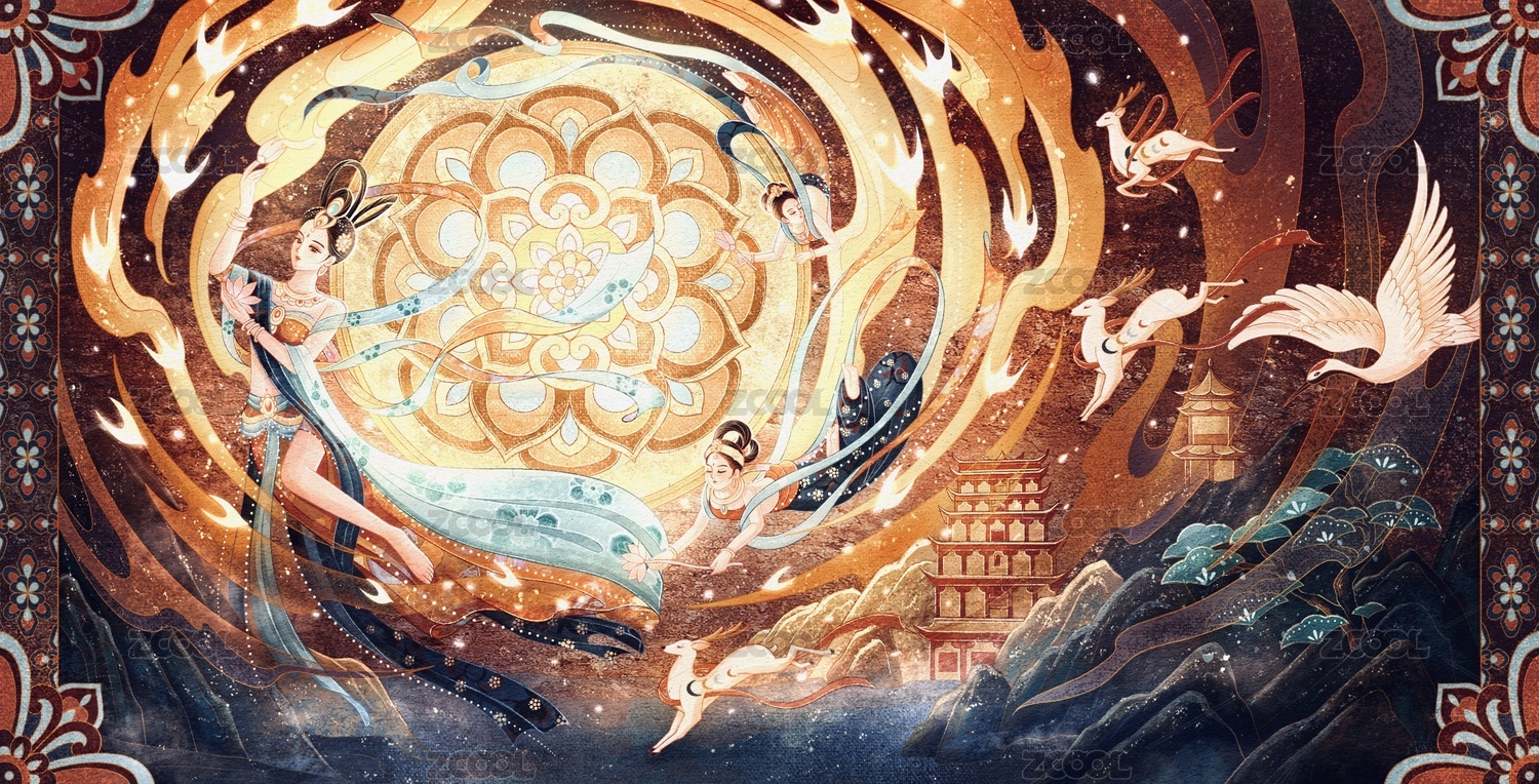 敦煌风格丝绸插画