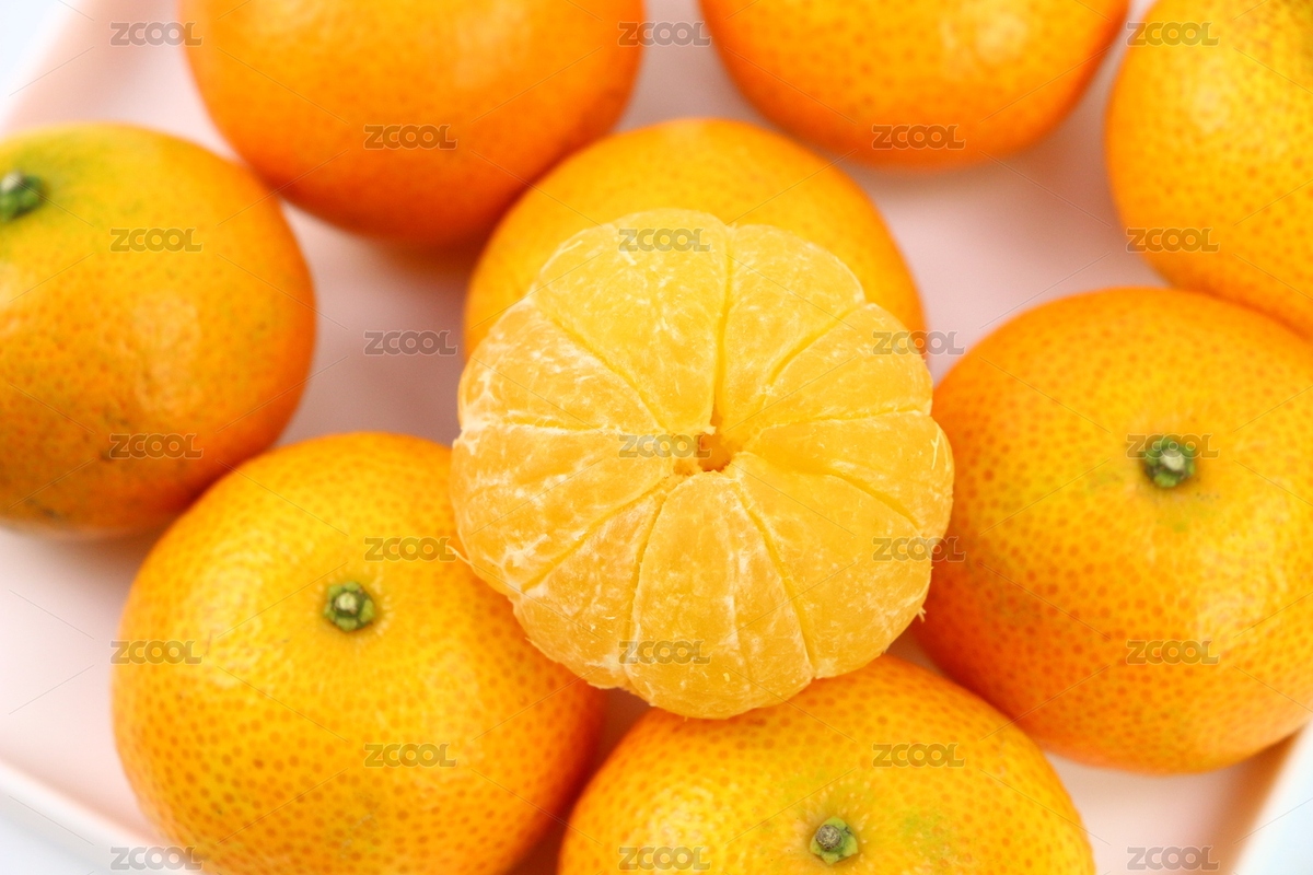 木垫子上放着一堆皇帝柑和皇帝柑果肉