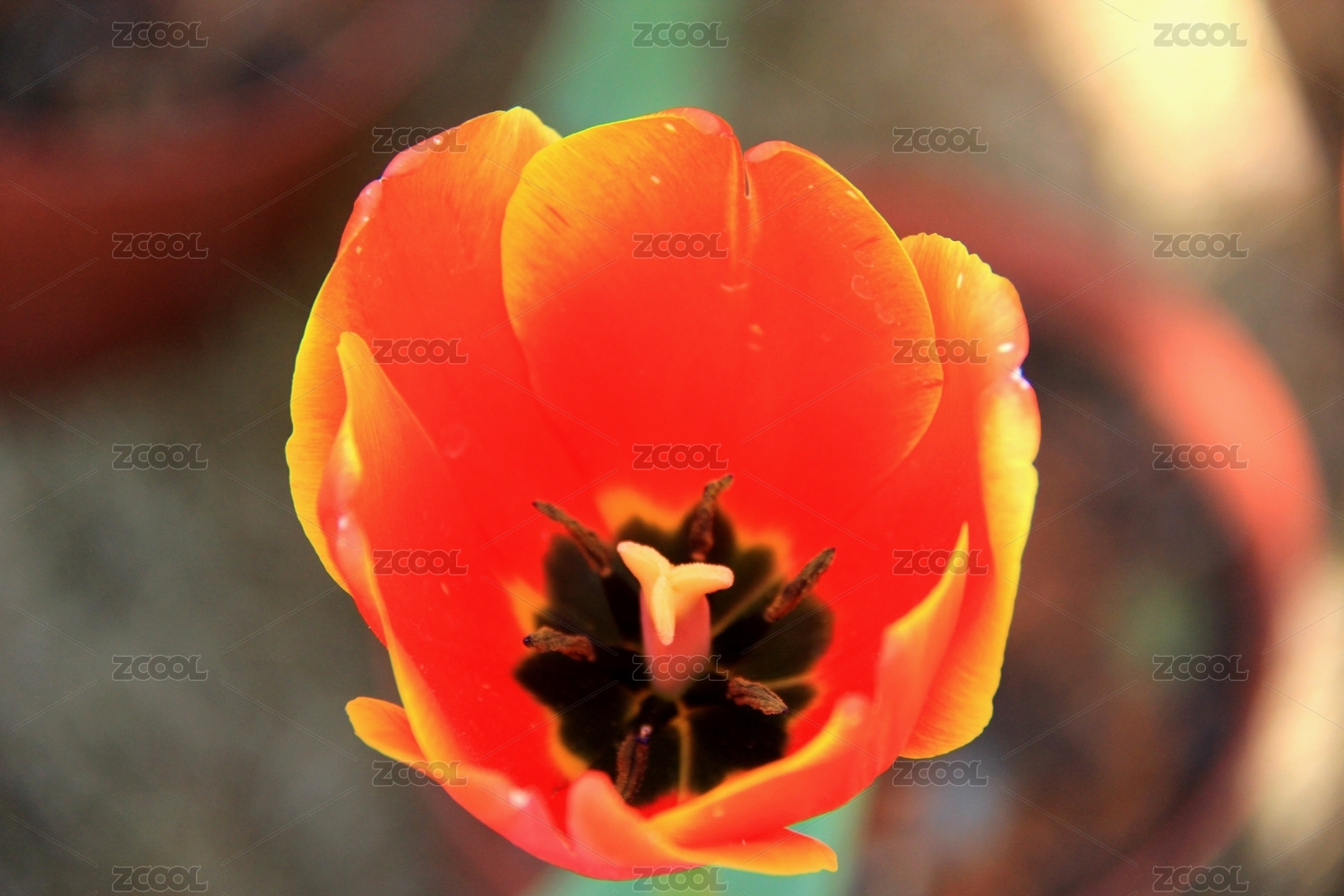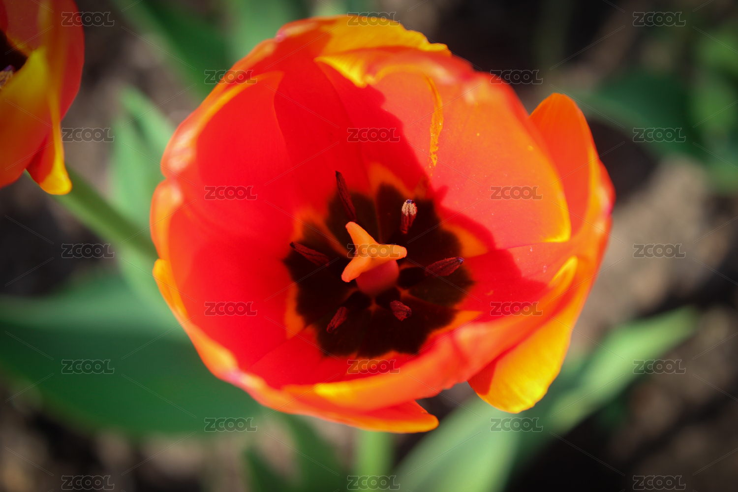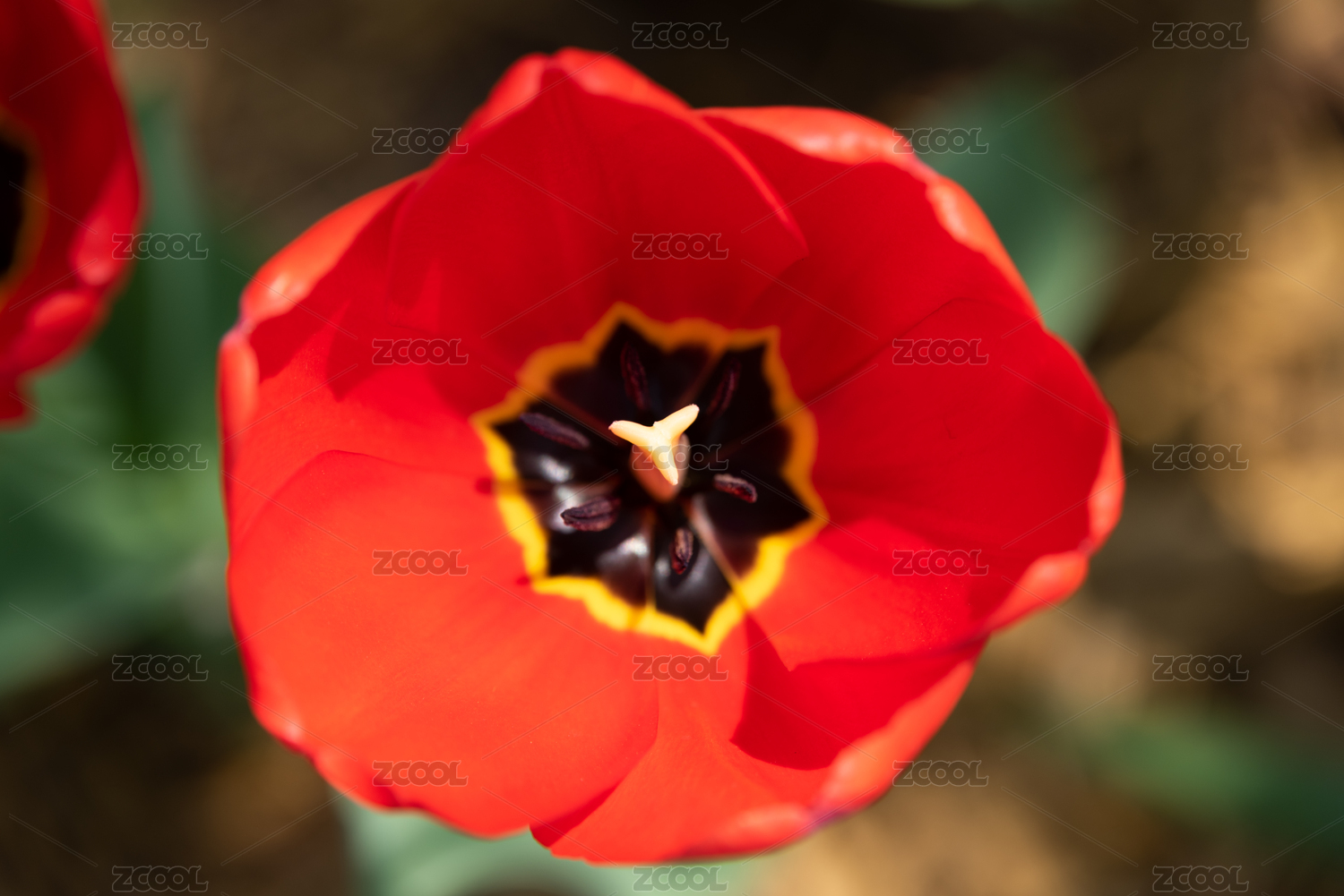 红色郁金香绽放特写