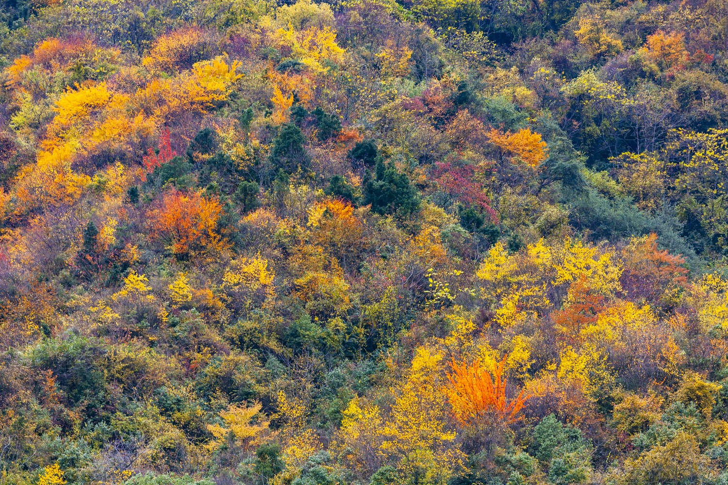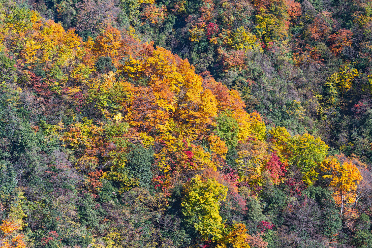 中国四川邓生沟到卧龙镇350国道彩林秋色