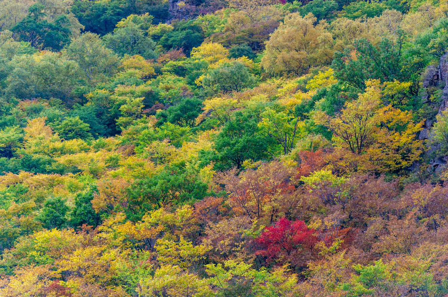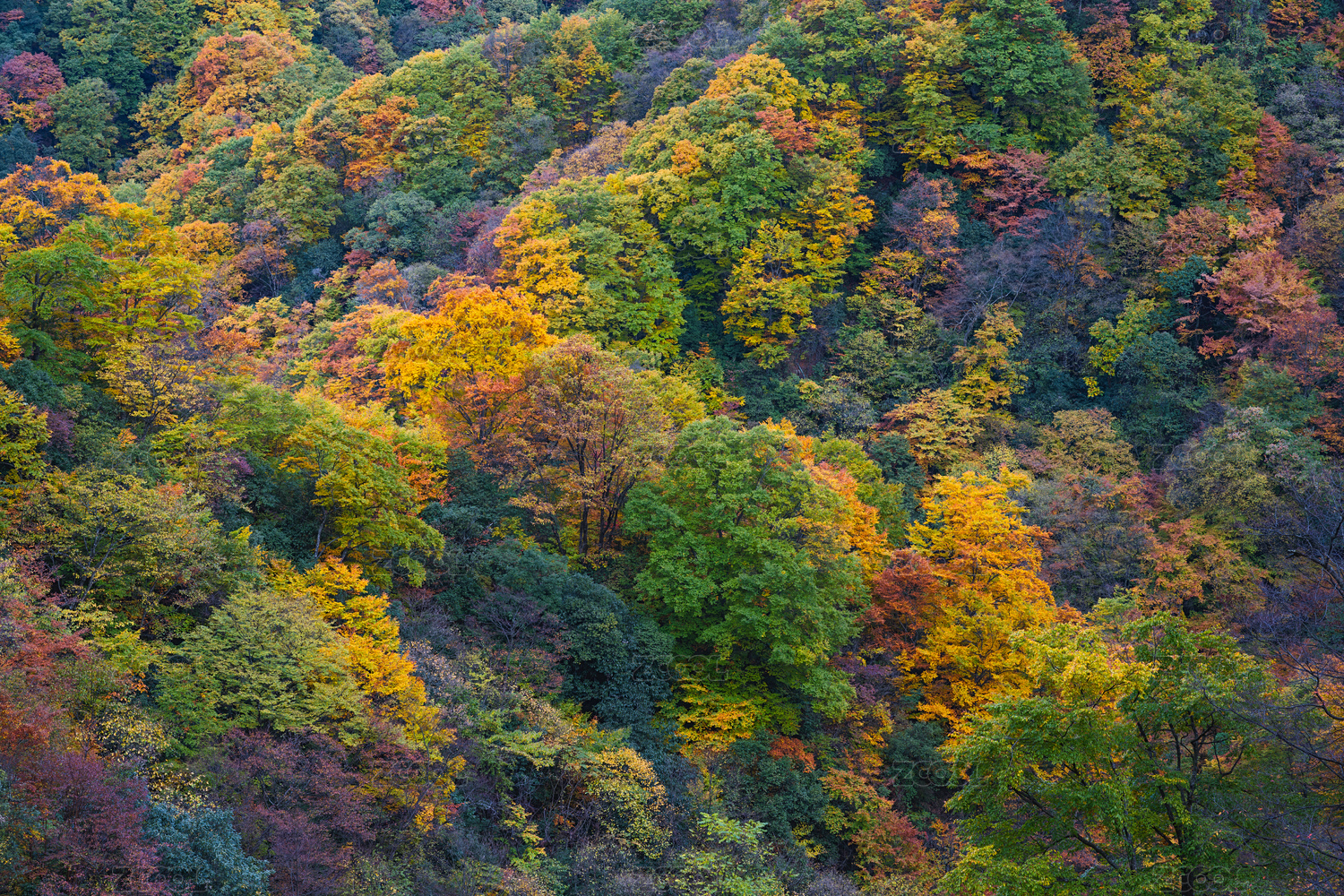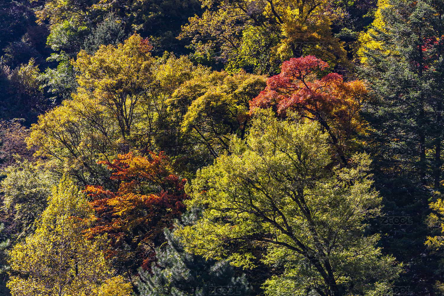 秋天辽宁本溪大冰沟森林公园漫山的彩林