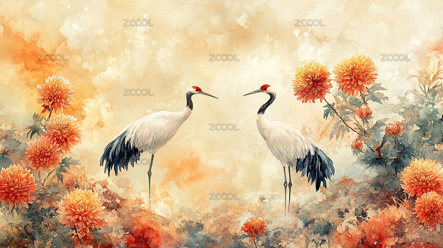 AIGC202406,重阳节,节日,节气,仙鹤,背景,插画,国风,留白,传统