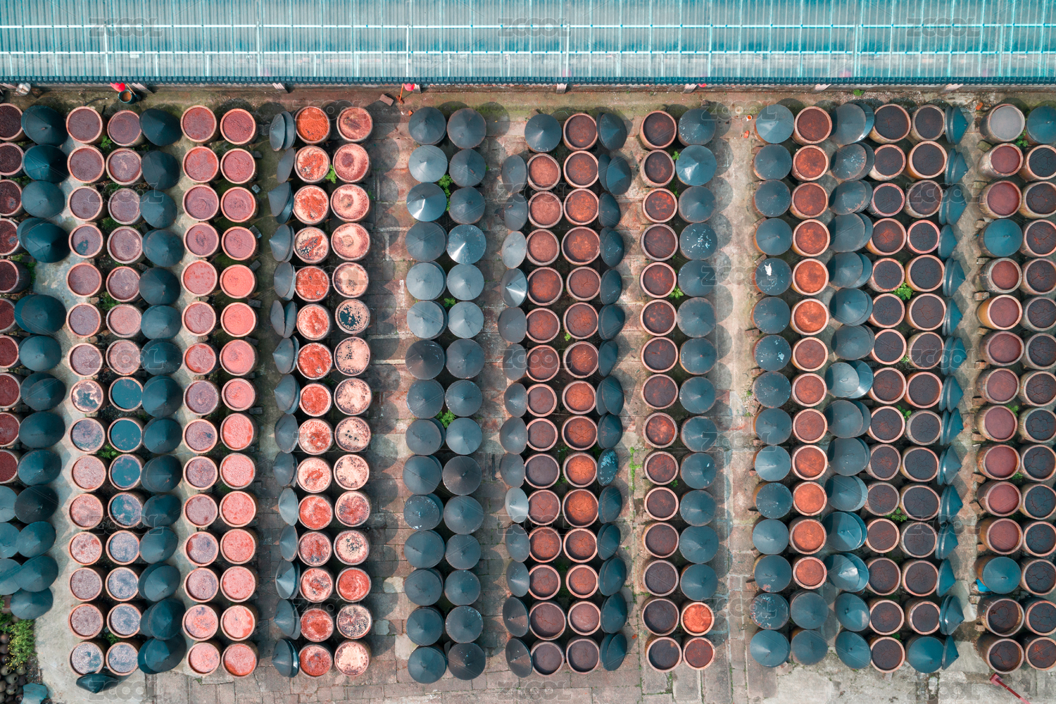 中国传统酿晒酱油航拍