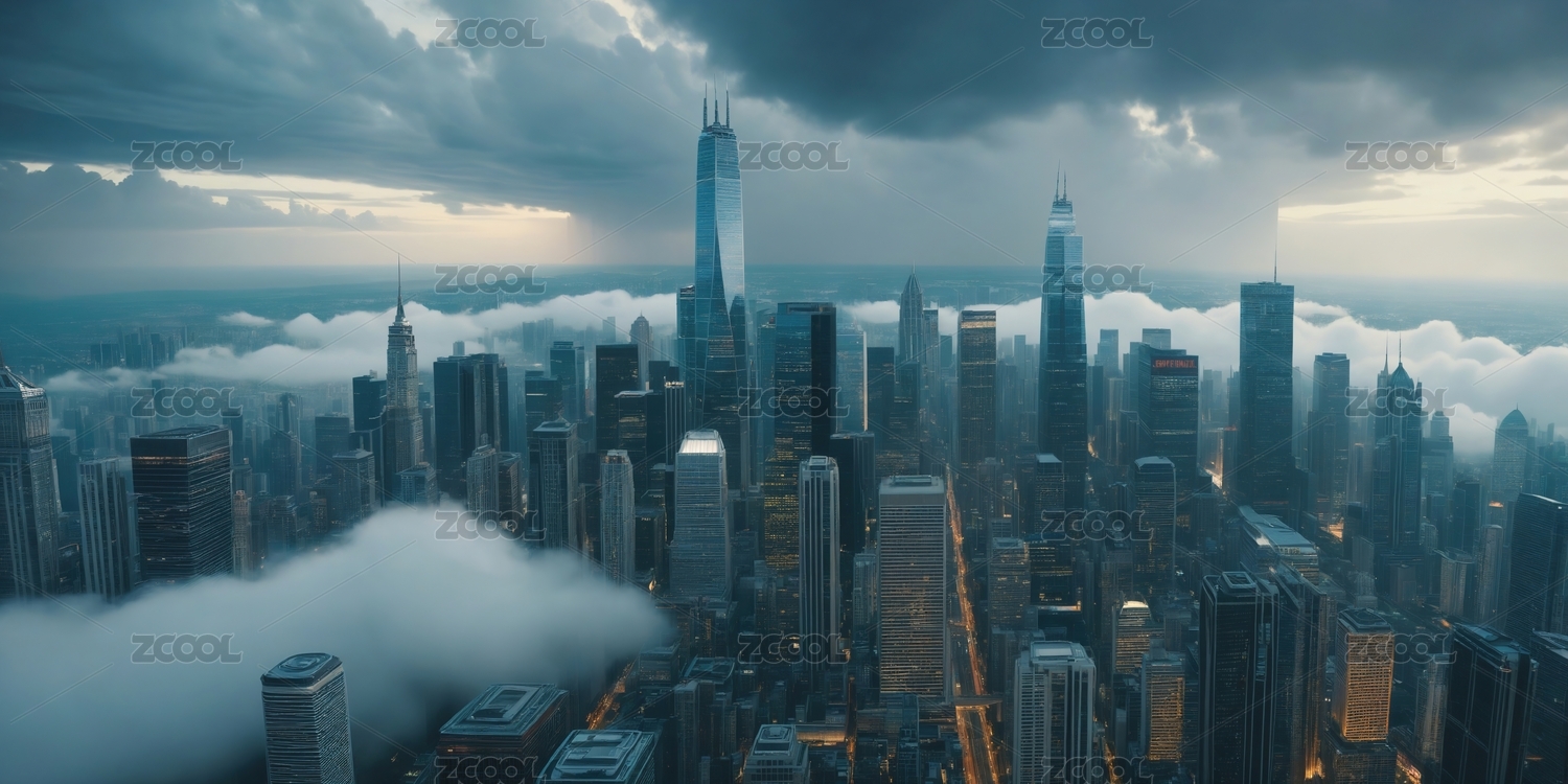 云,雾,城市,现代,高楼,建筑,背景,风景