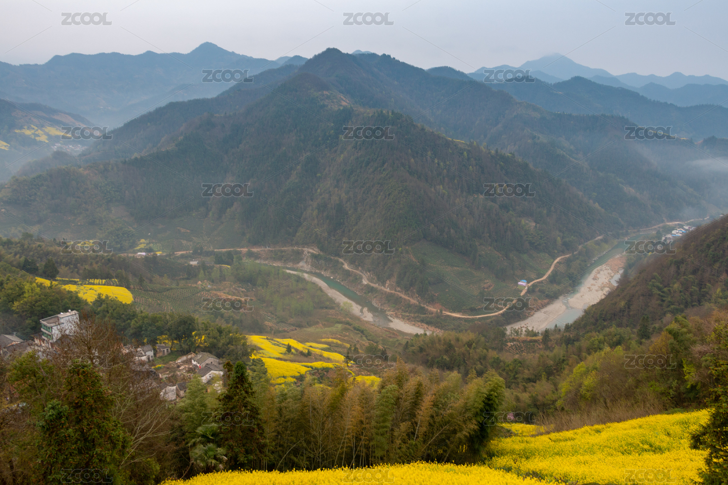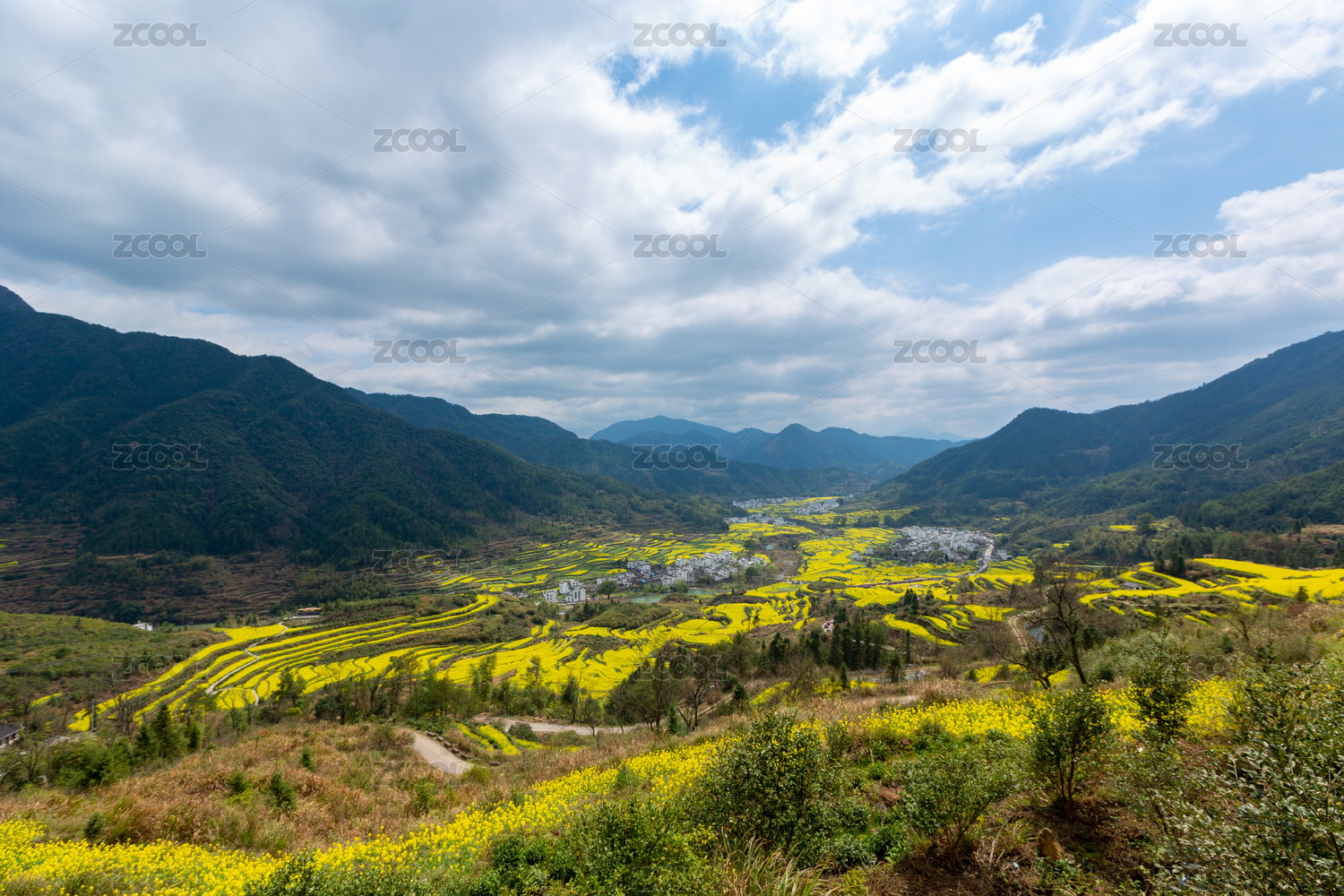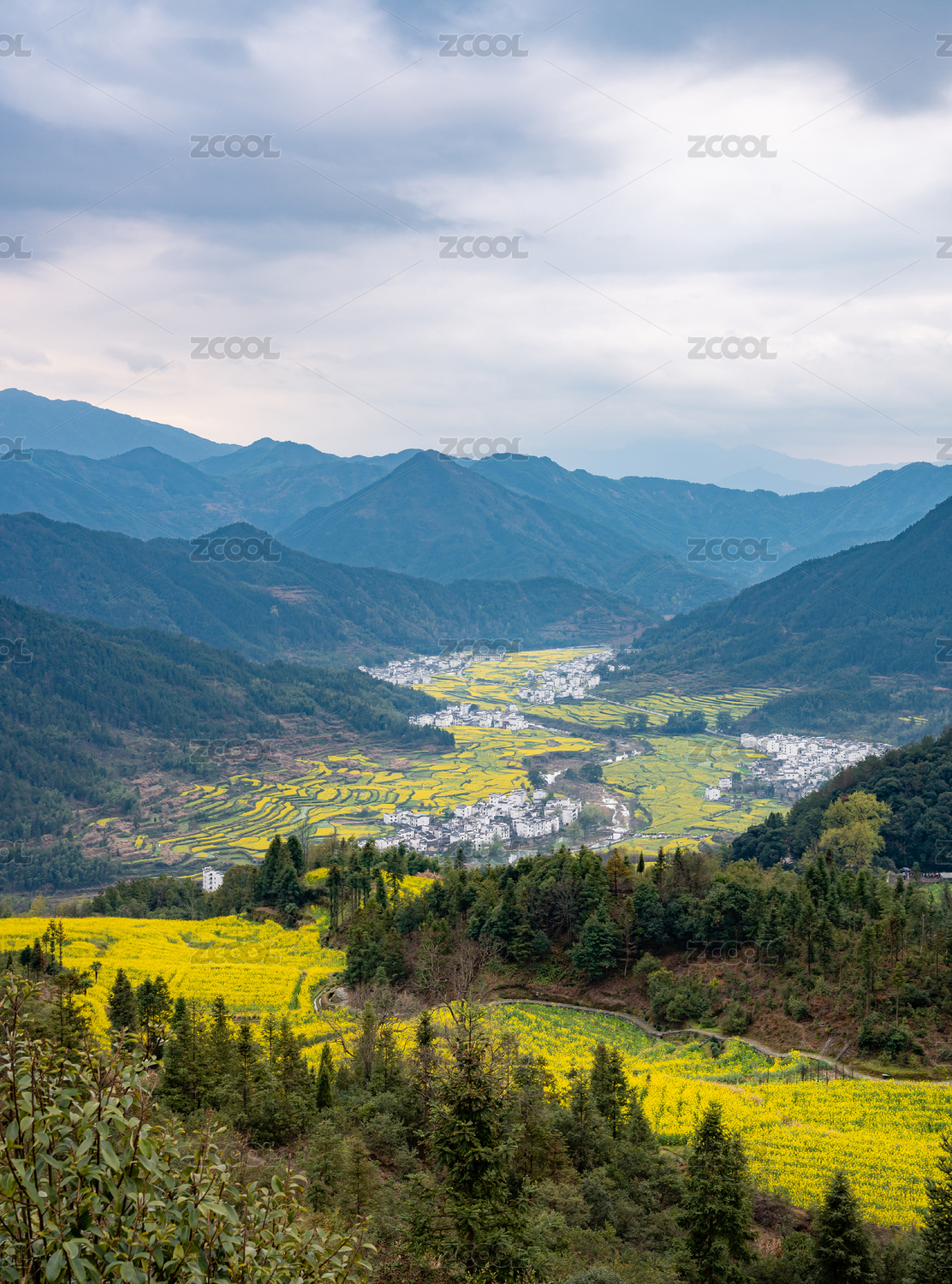 户外,山峰,山区,徽派建筑,油菜花,黄色,无人,绿色,植物,春天