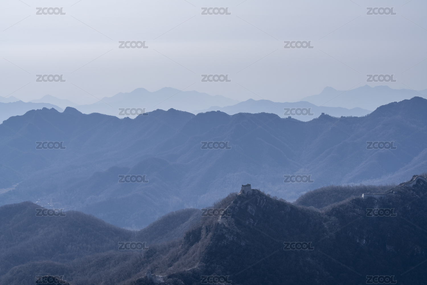 冬天山峦长城自然风景