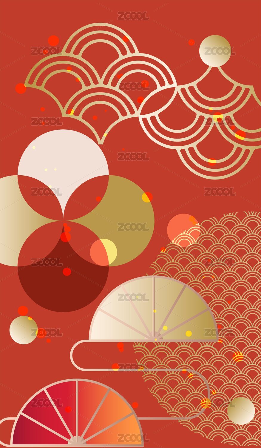 矢量传统红金插画背景