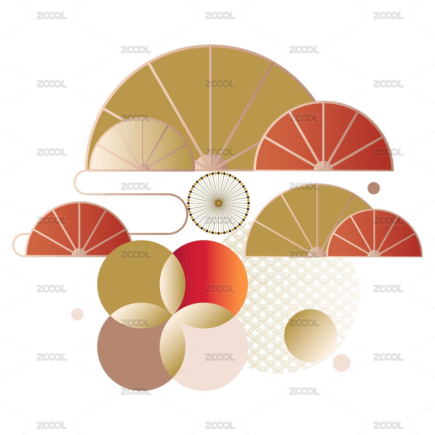 抽象,圆形,自然,插画,图案,植物,花朵,扇形,新春,元素