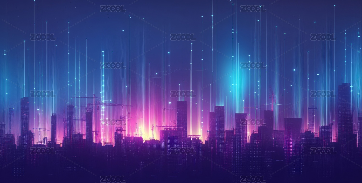 3D紫色抽象城市商务背景