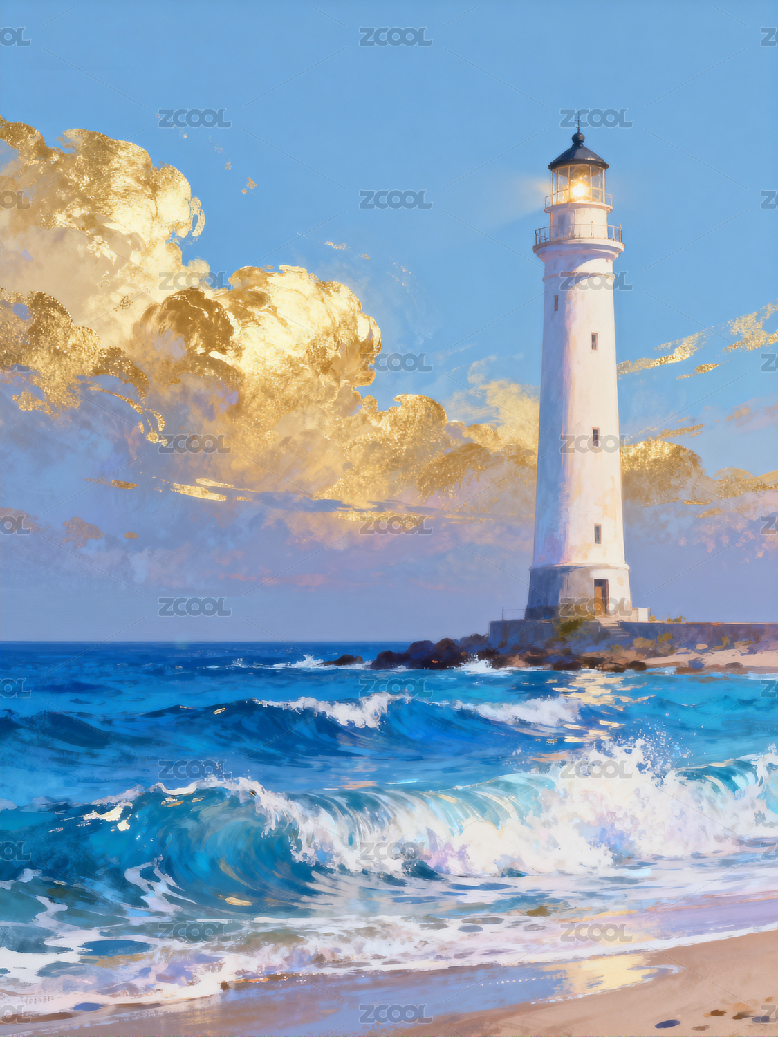 夜晚,海,海边,海岸,灯塔,插画,背景,风景,特写,云