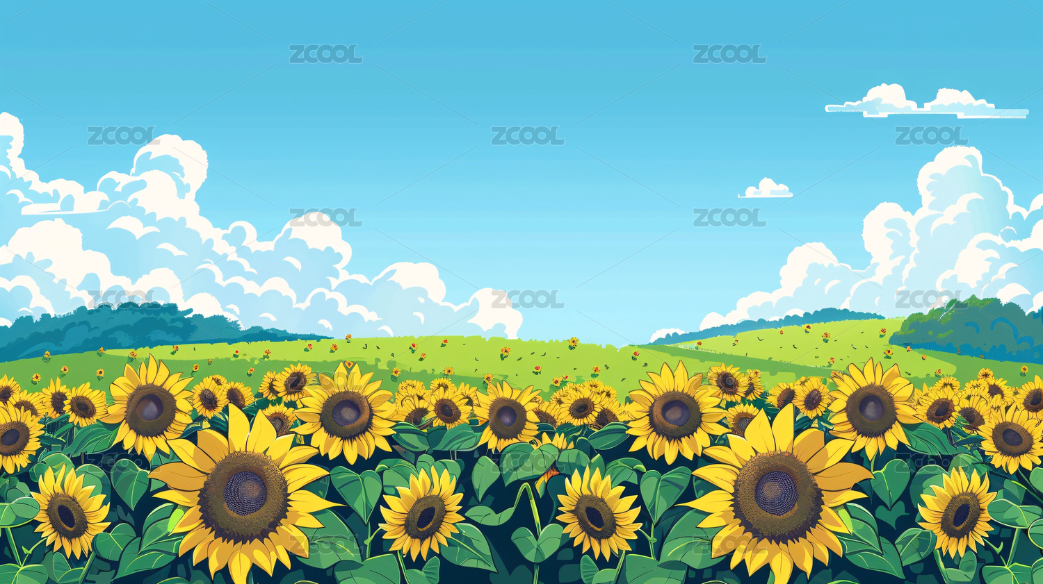向日葵花田插画
