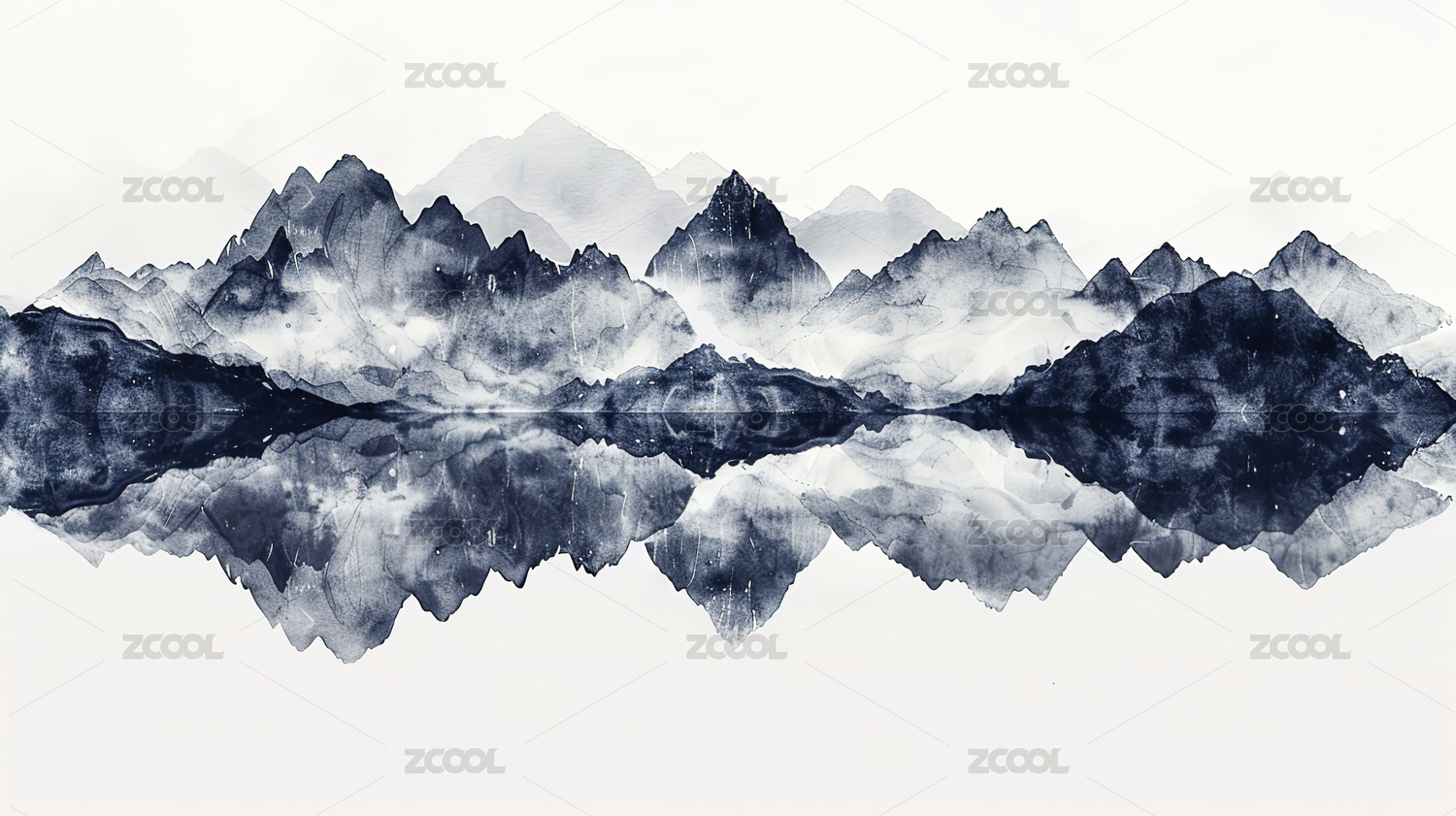 新中式水墨山峰禅意装饰画壁纸艺术概念插图