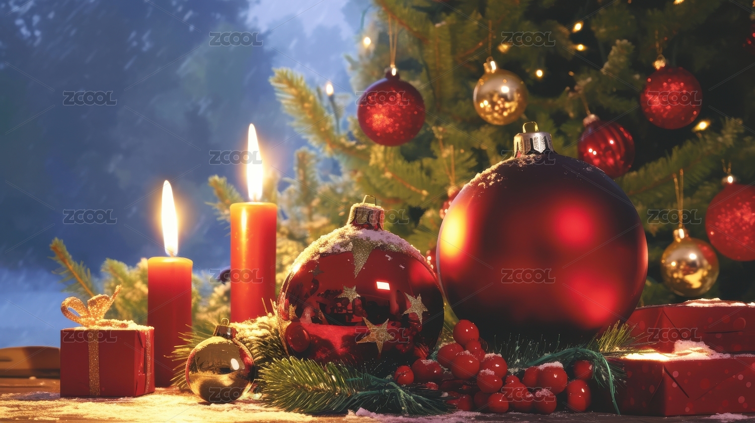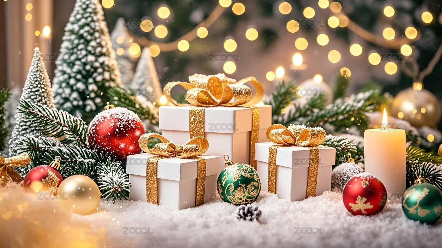 圣诞节,节日背景,圣诞装饰,圣诞树,礼物,雪花,圣诞灯,红色,绿色,金色