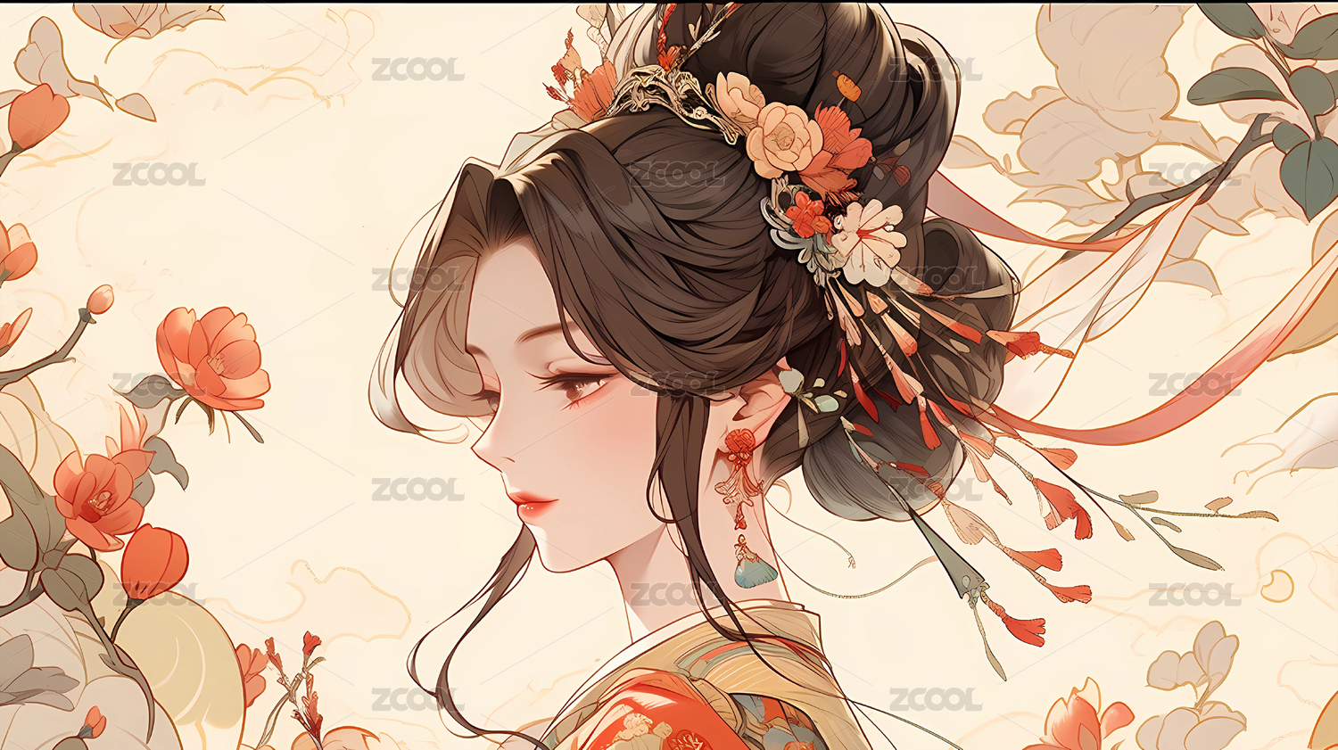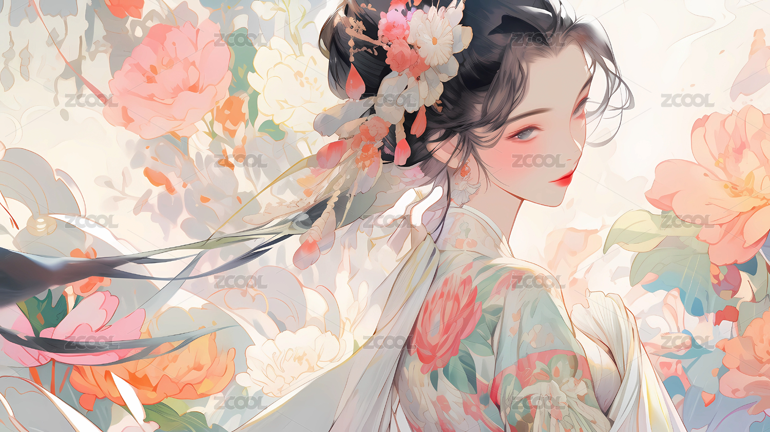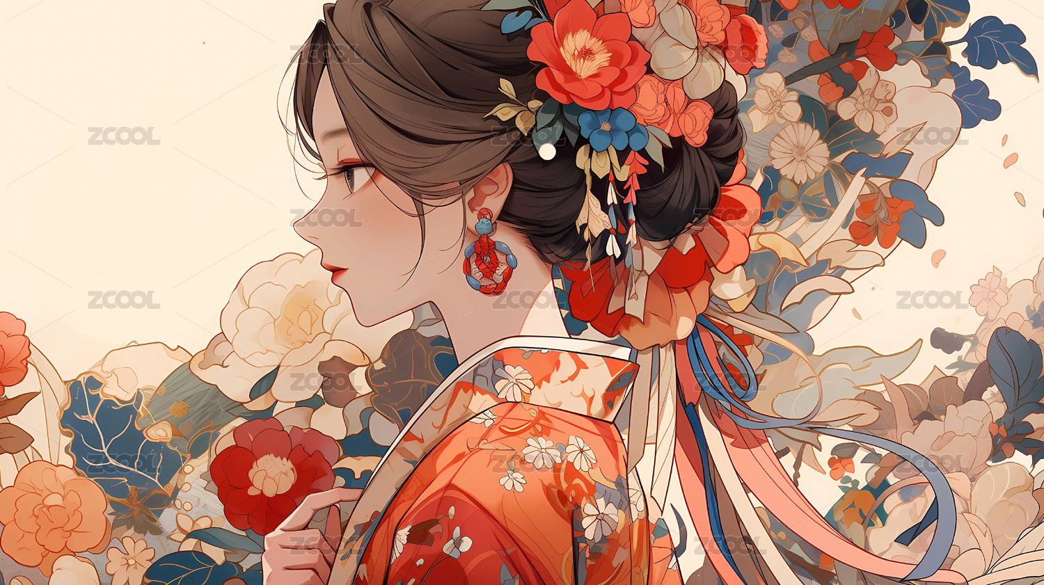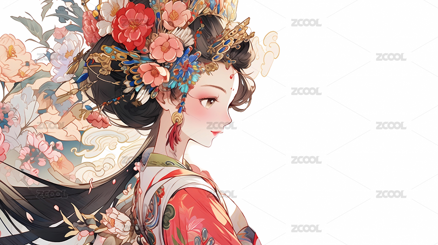 手绘,卡通,动漫,唯美,中国女孩,亚洲文化,女孩,亚洲女孩,盛装,吉祥