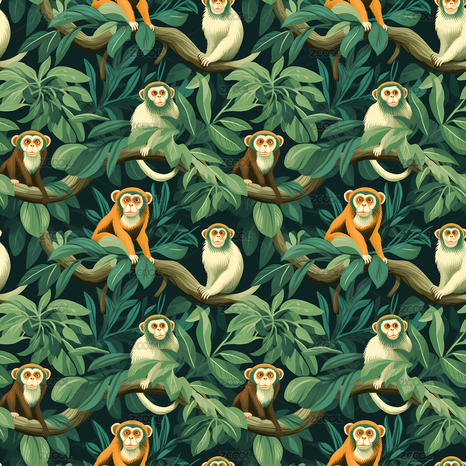 猴子无缝平铺图案背景
