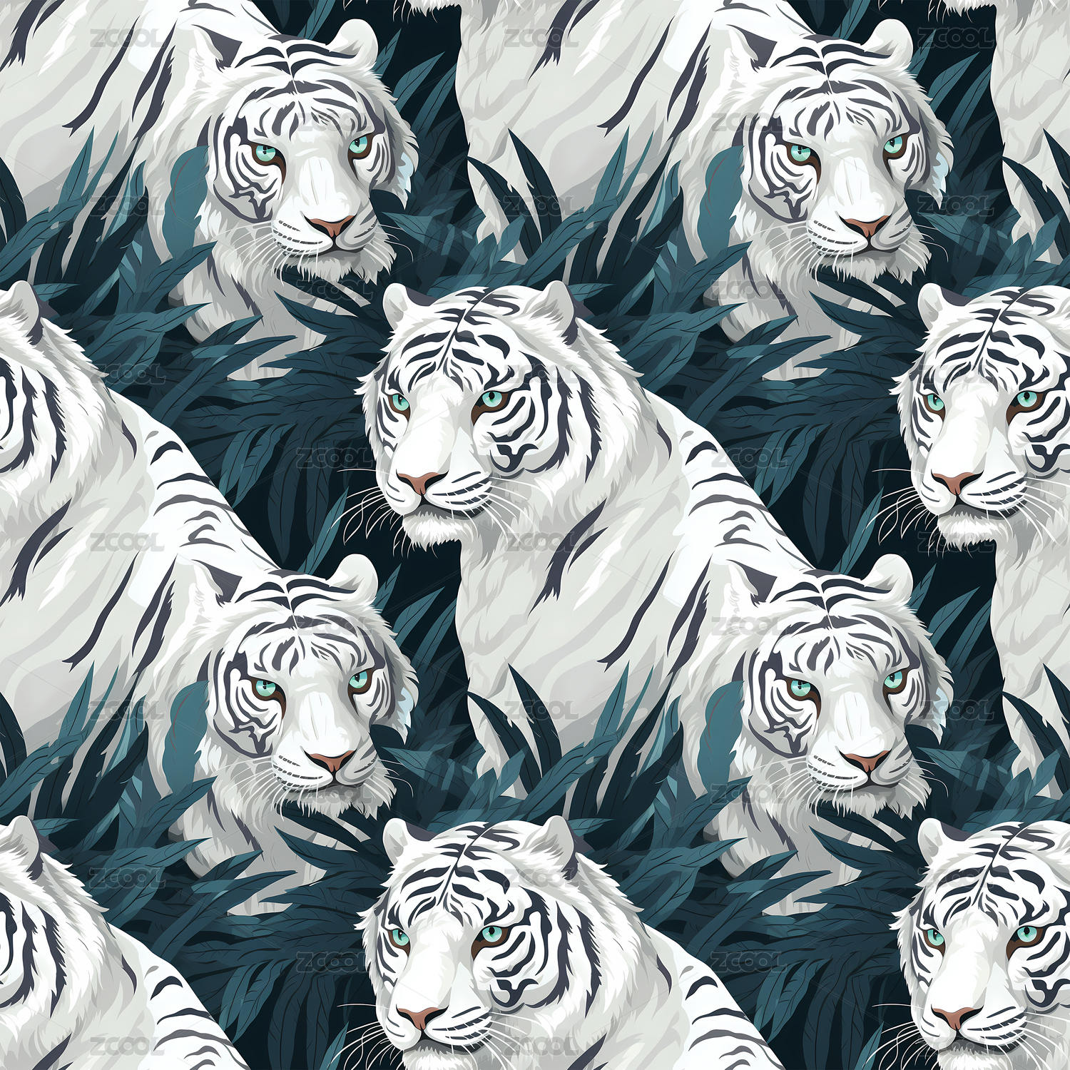 白虎无缝平铺四方连续纹样图案背景
