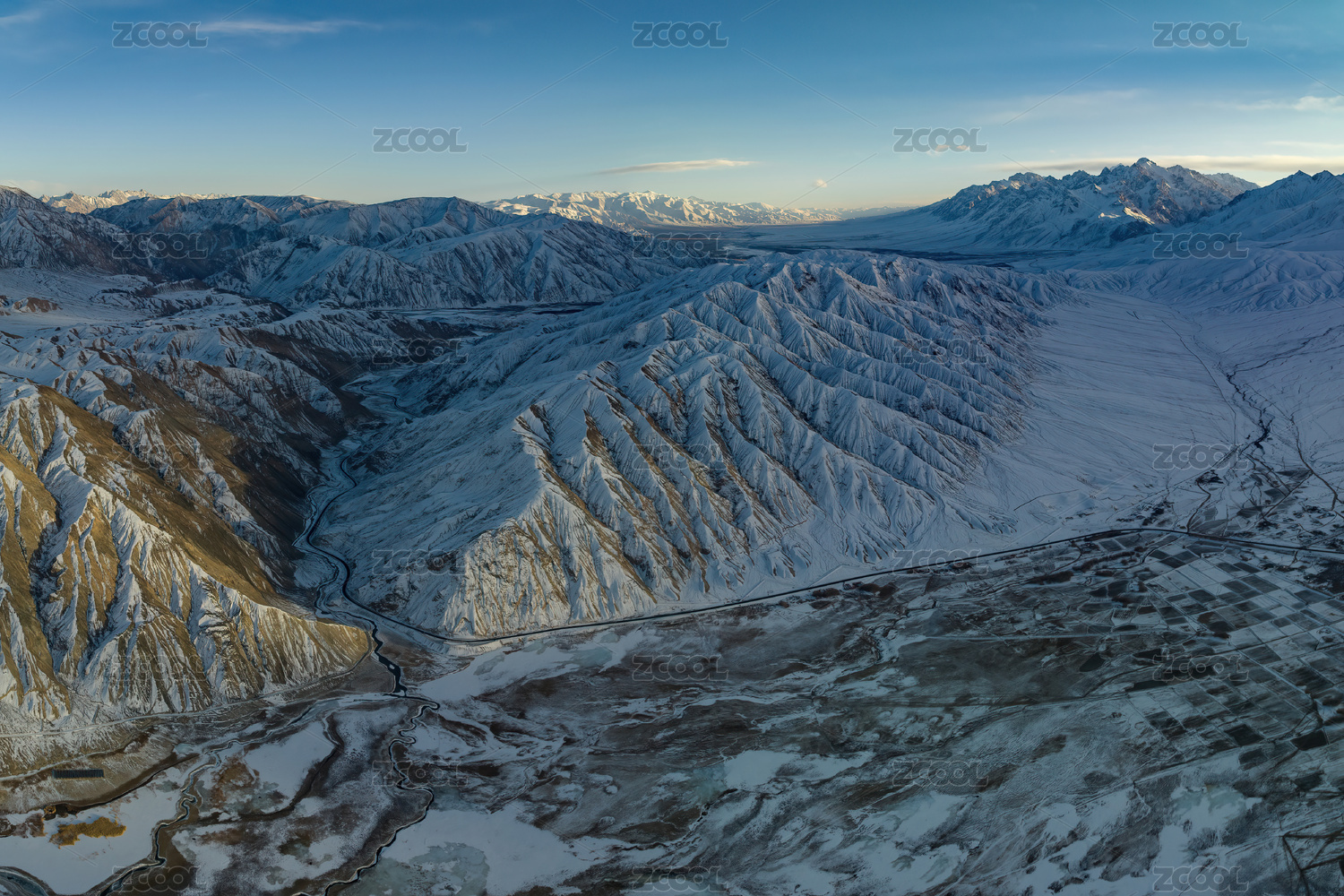 航拍中国新疆昌吉S101丹霞地貌雪后景色