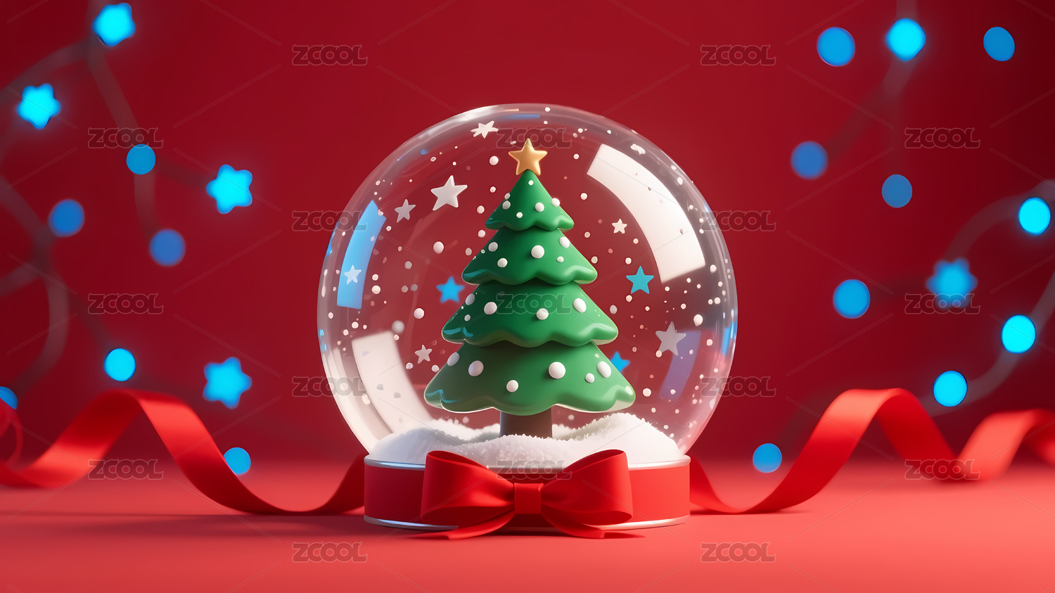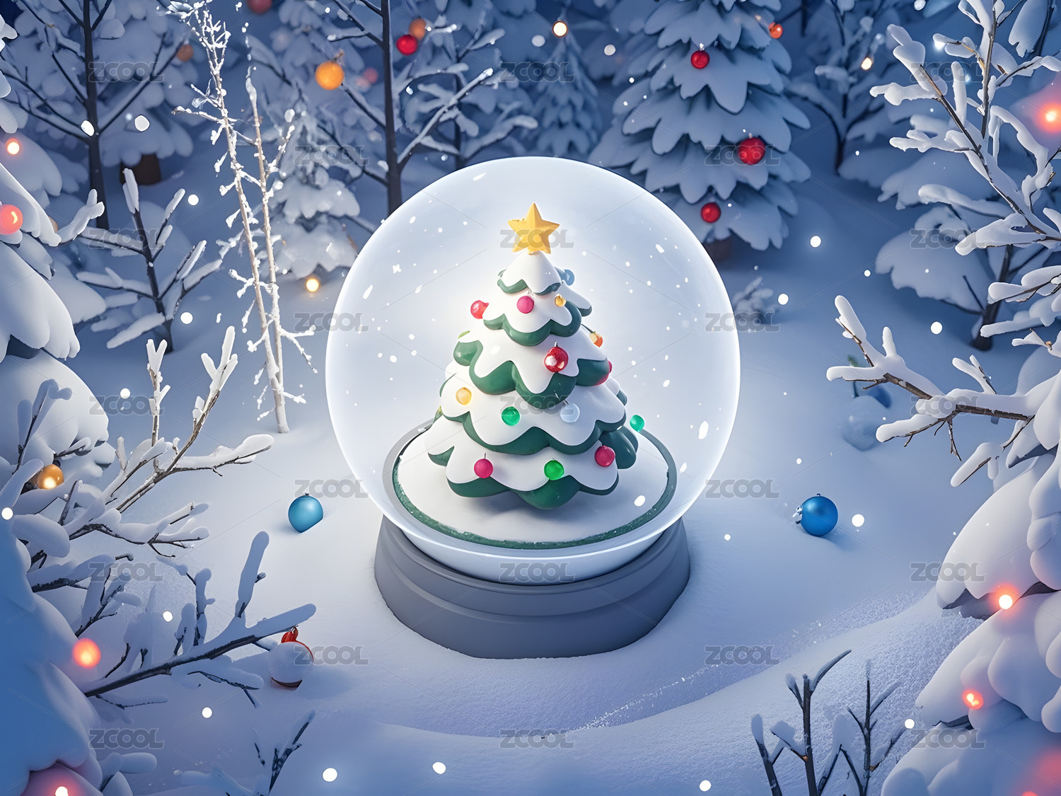 雪花玻璃球与圣诞树主题