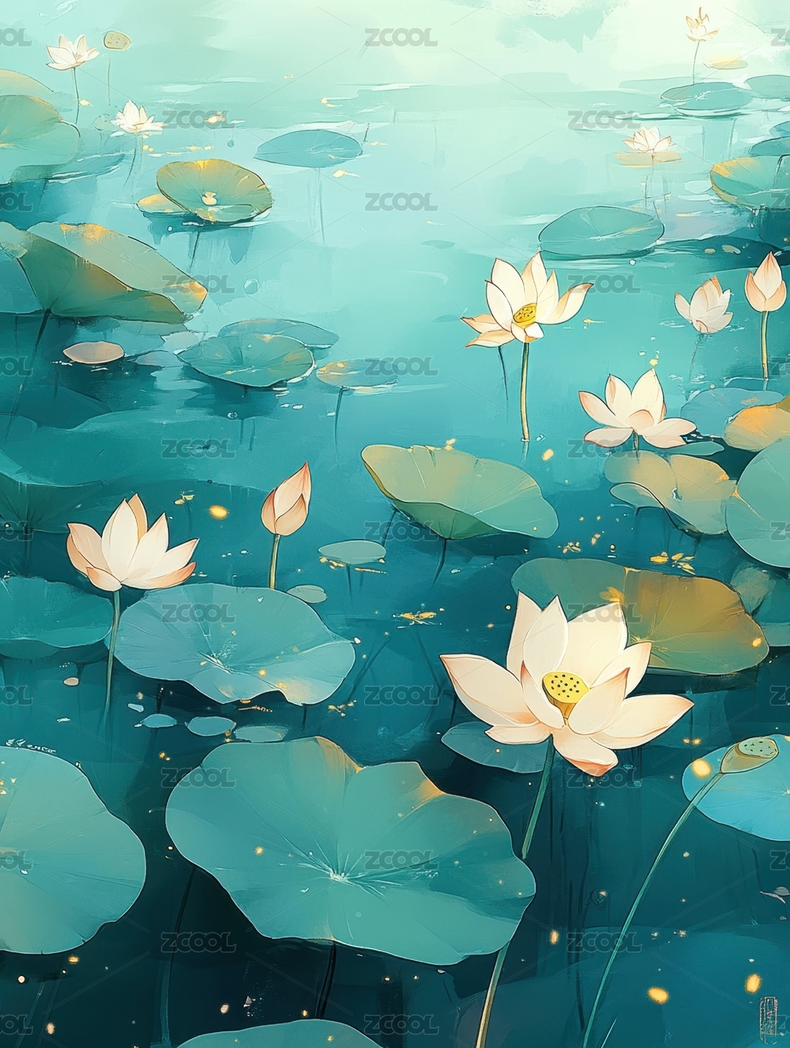 夏日荷花荷叶卡通小清新国风小暑节气插画