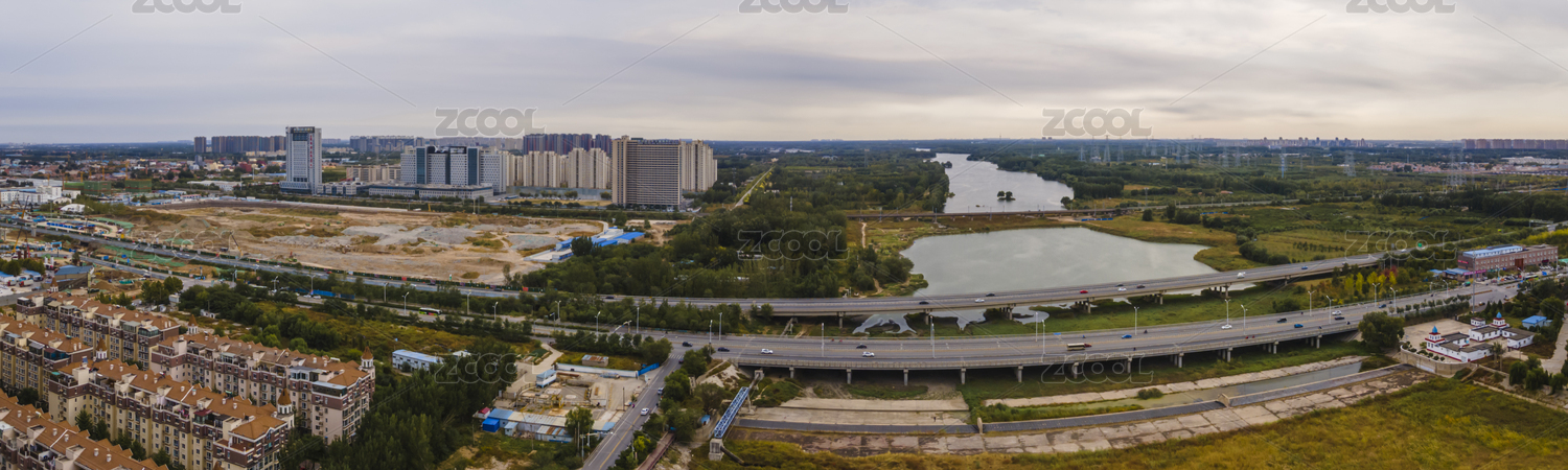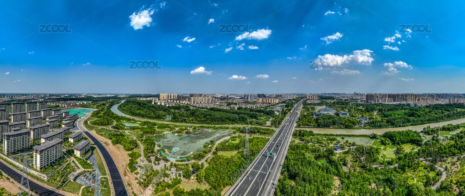 航拍河南郑州象湖生态湿地公园及贾鲁河水系