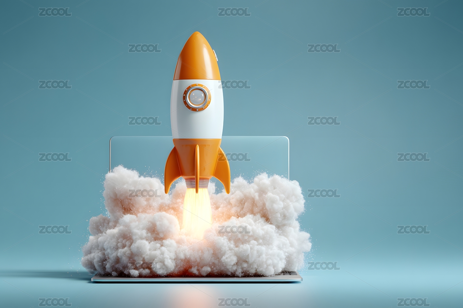扫射火箭飞船火箭飞船冒出黄白烟雾高清图片