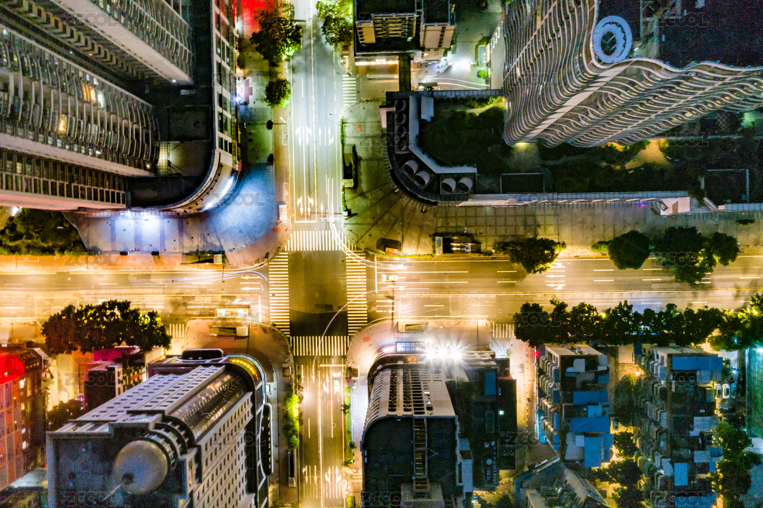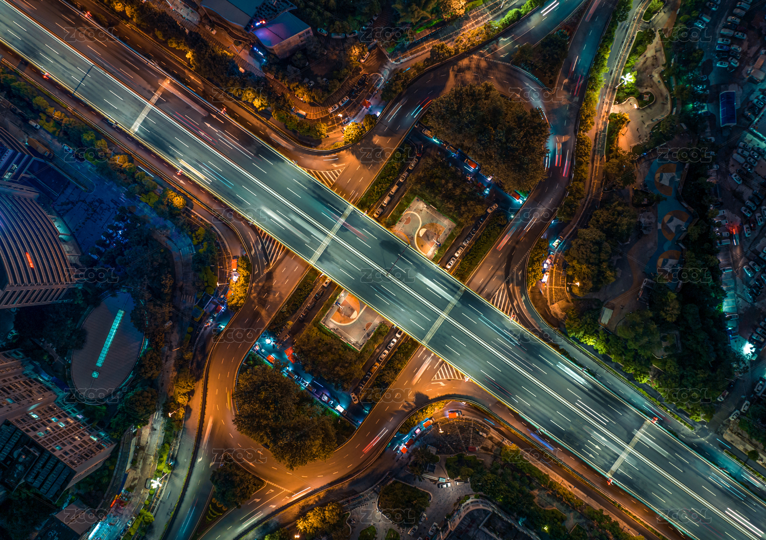 城市,现代,夜景,夜晚,部分,灯光,车流,航拍,交通,运输