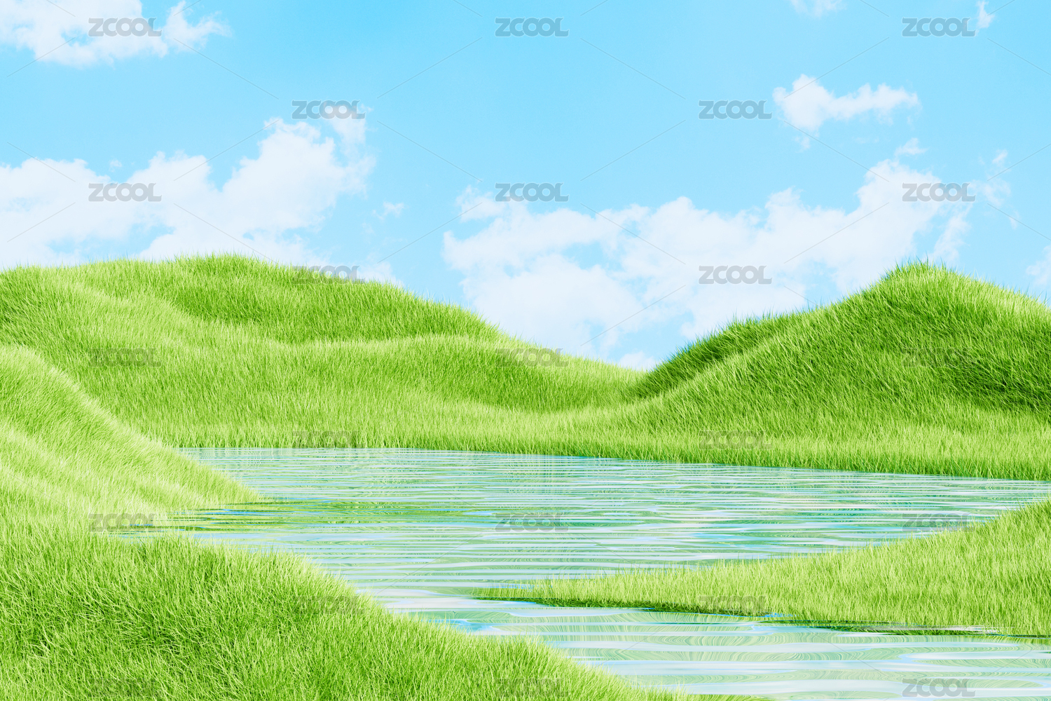 绿色的草地和湖