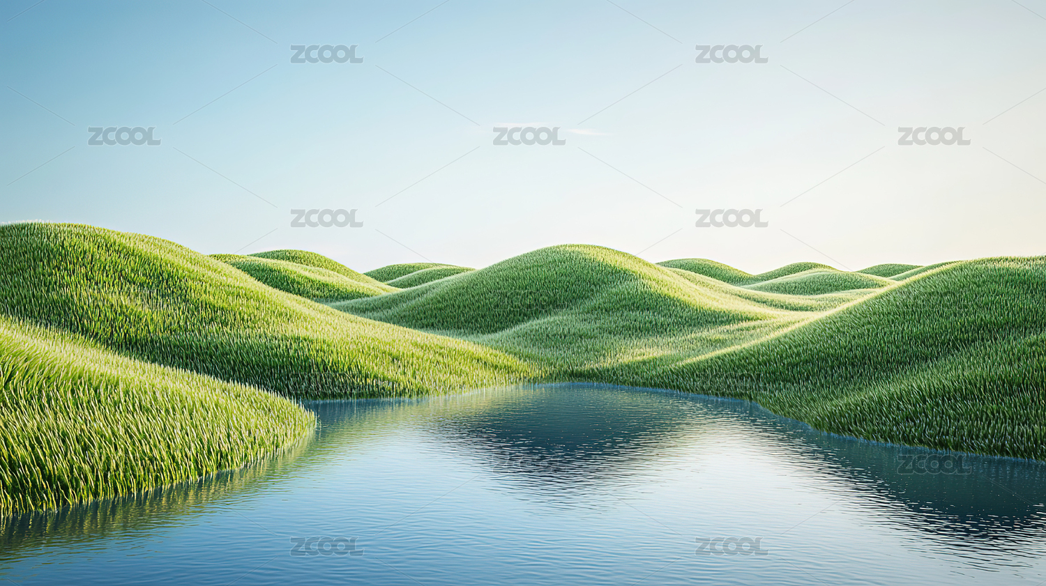 绿色的草地和倒影