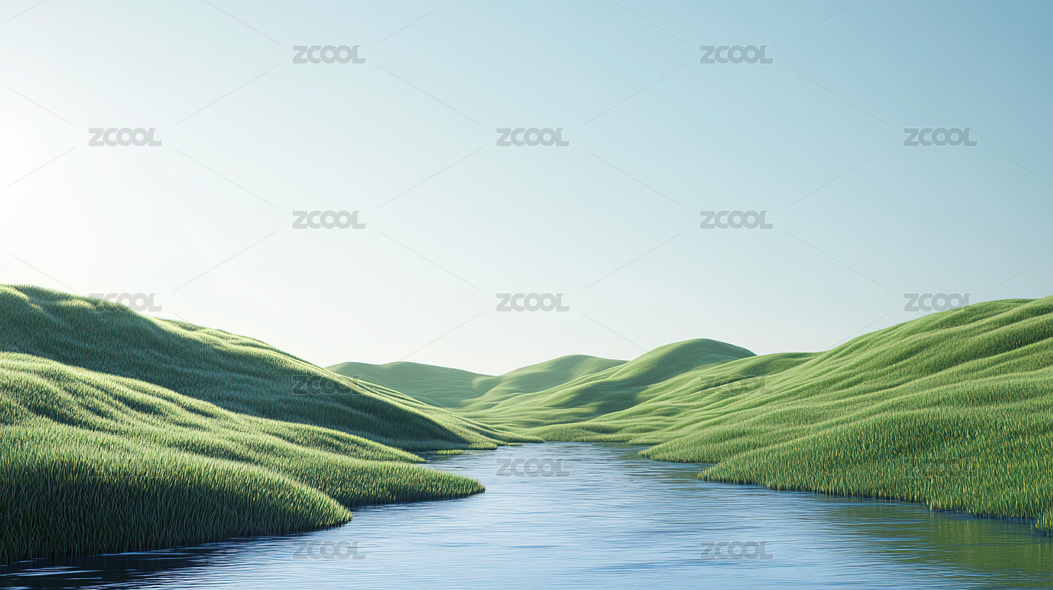 绿色山丘与小溪
