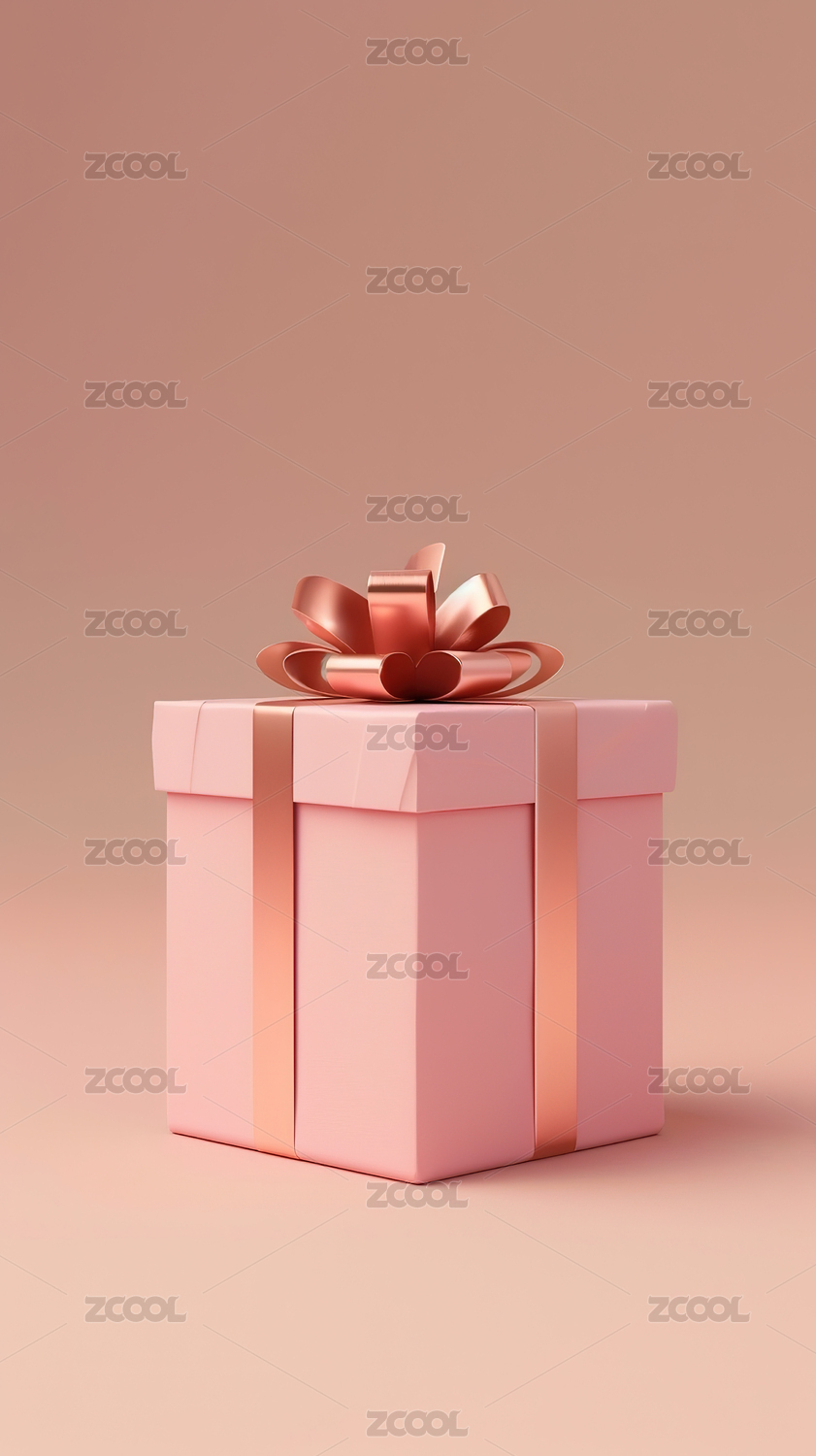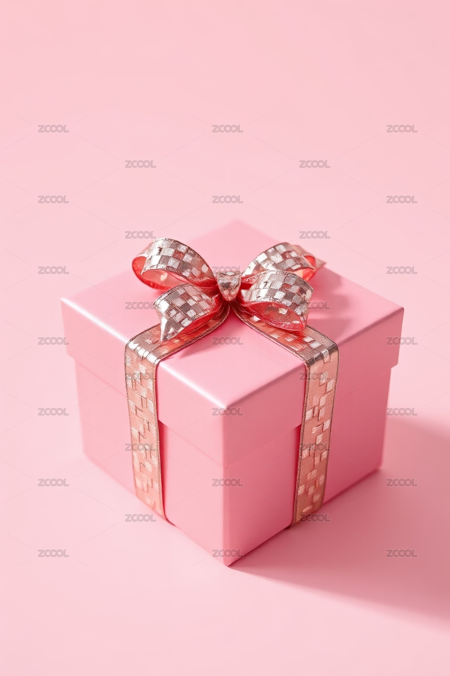 一个粉红色的礼盒上面一个粉红色的蝴蝶结高
