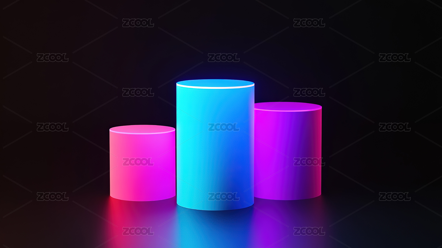 科幻抽象室内蓝色发光圆柱3D赛博立体插画