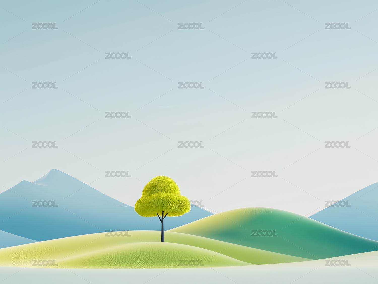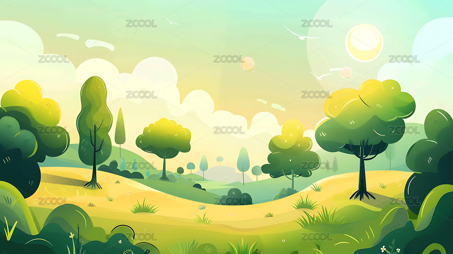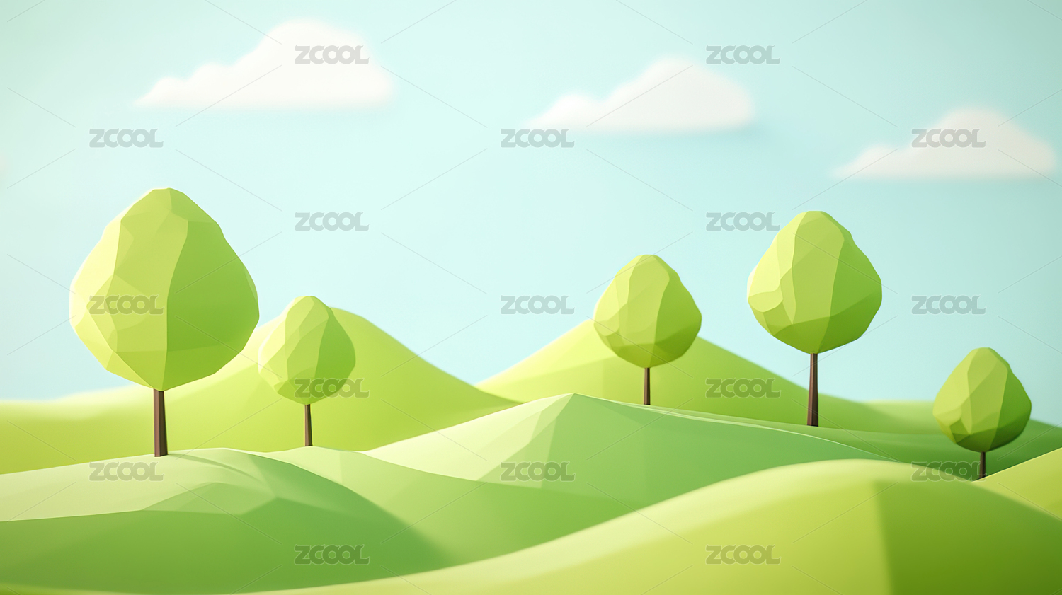 绿色羊毛毡毛绒毛线田野3D卡通立体插画