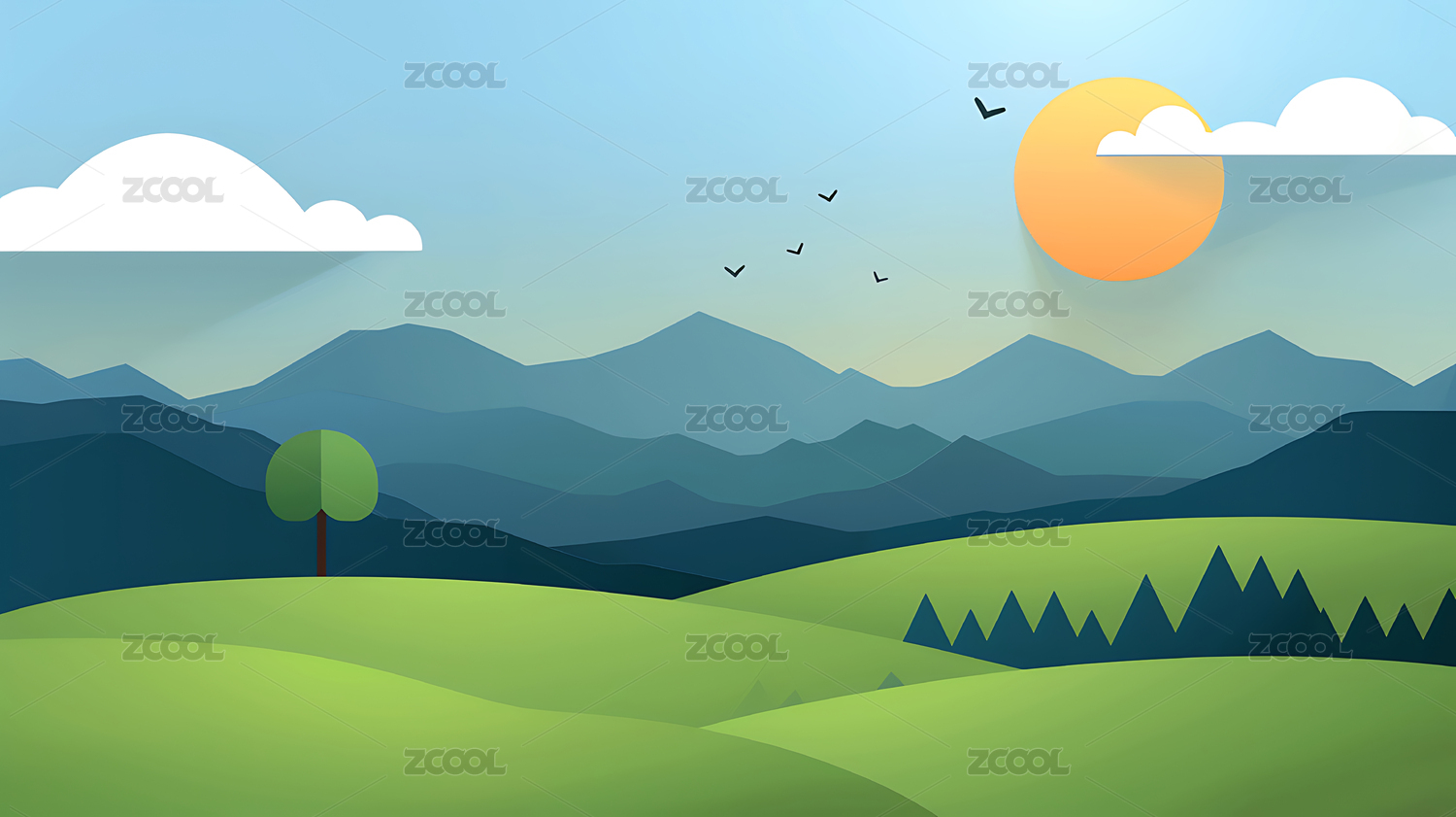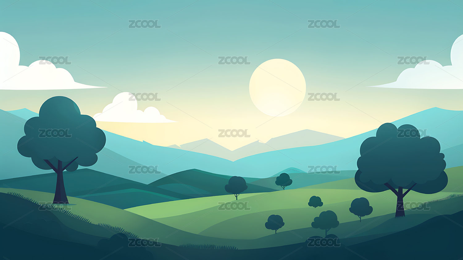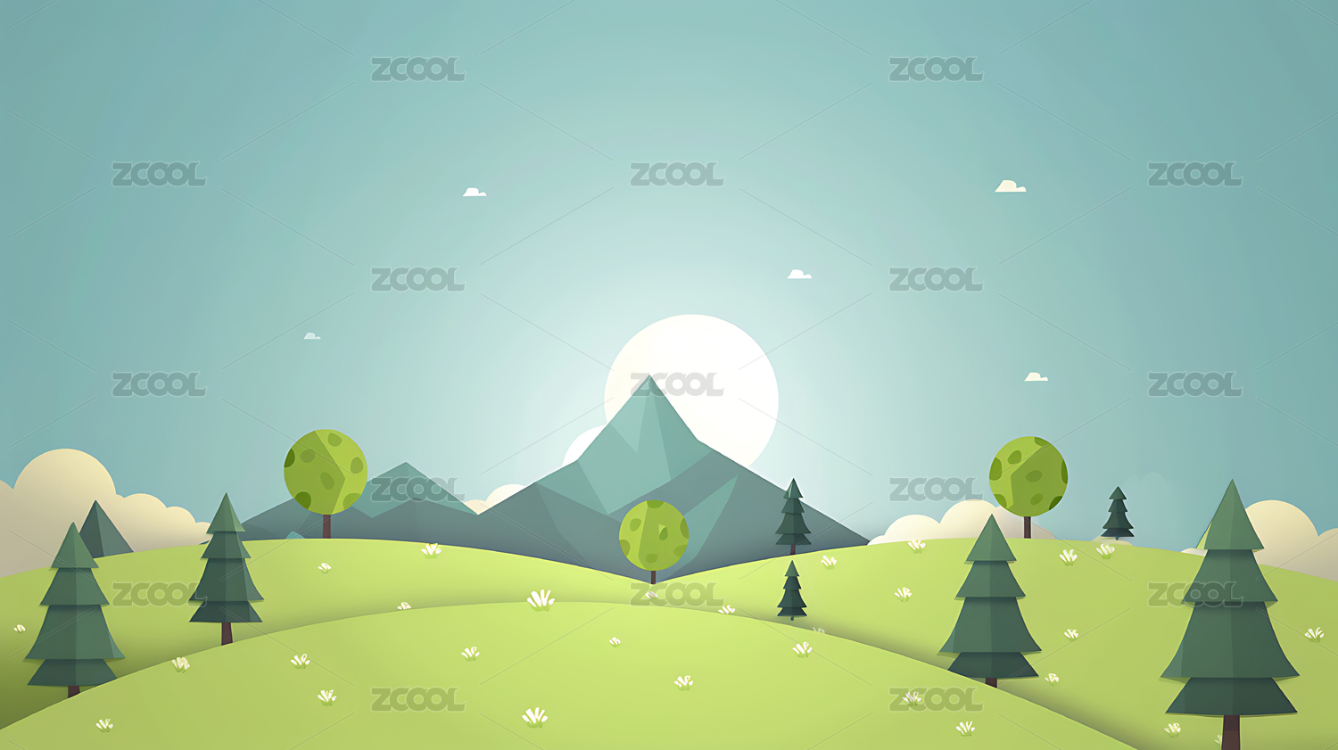 绿色羊毛毡毛绒毛线田野3D卡通立体插画