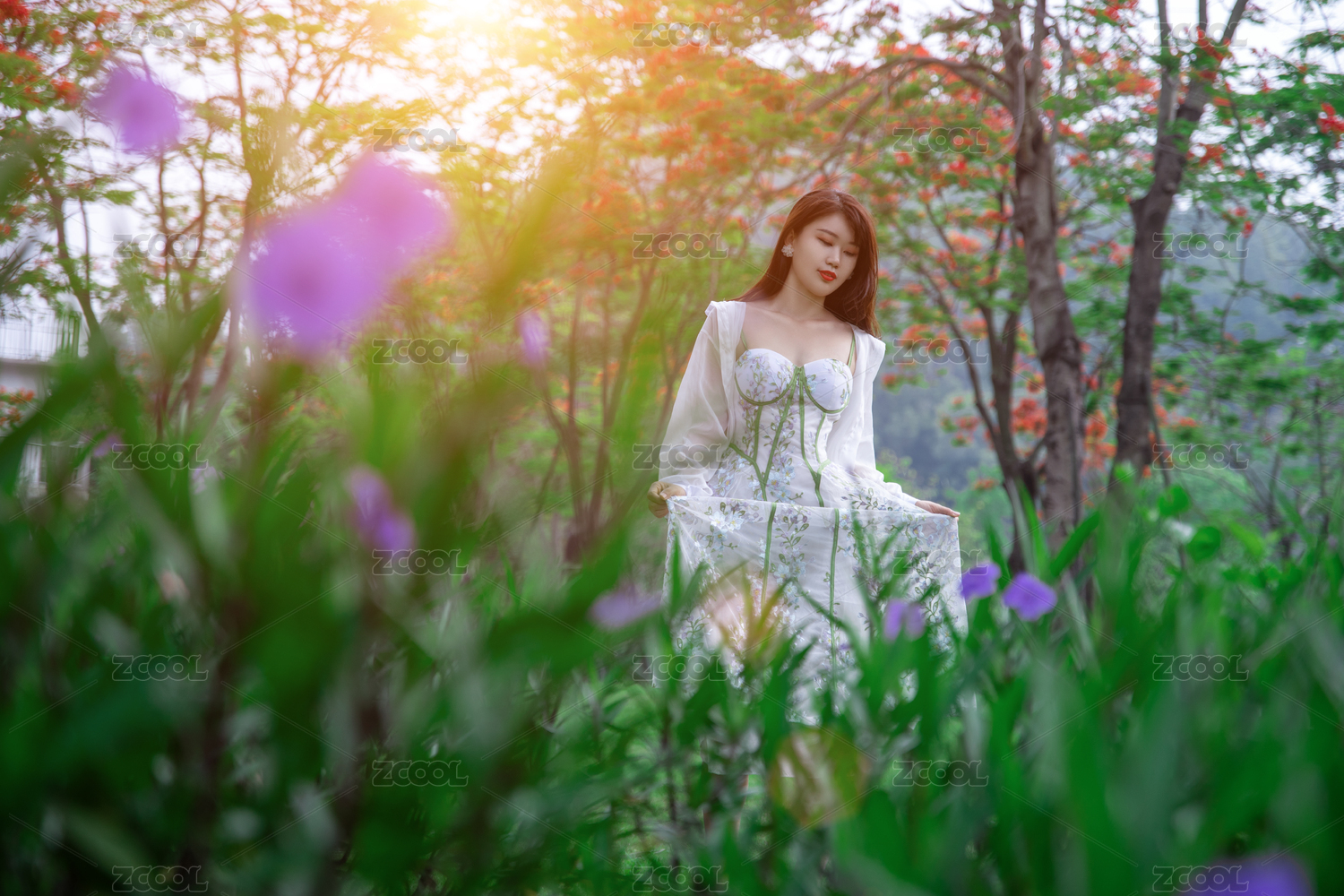 穿白色连衣裙的少女