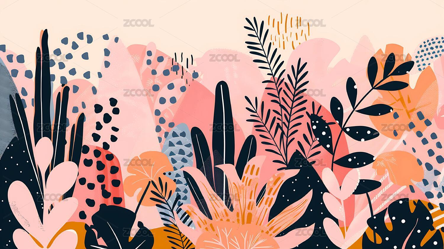 彩色植物背景插画