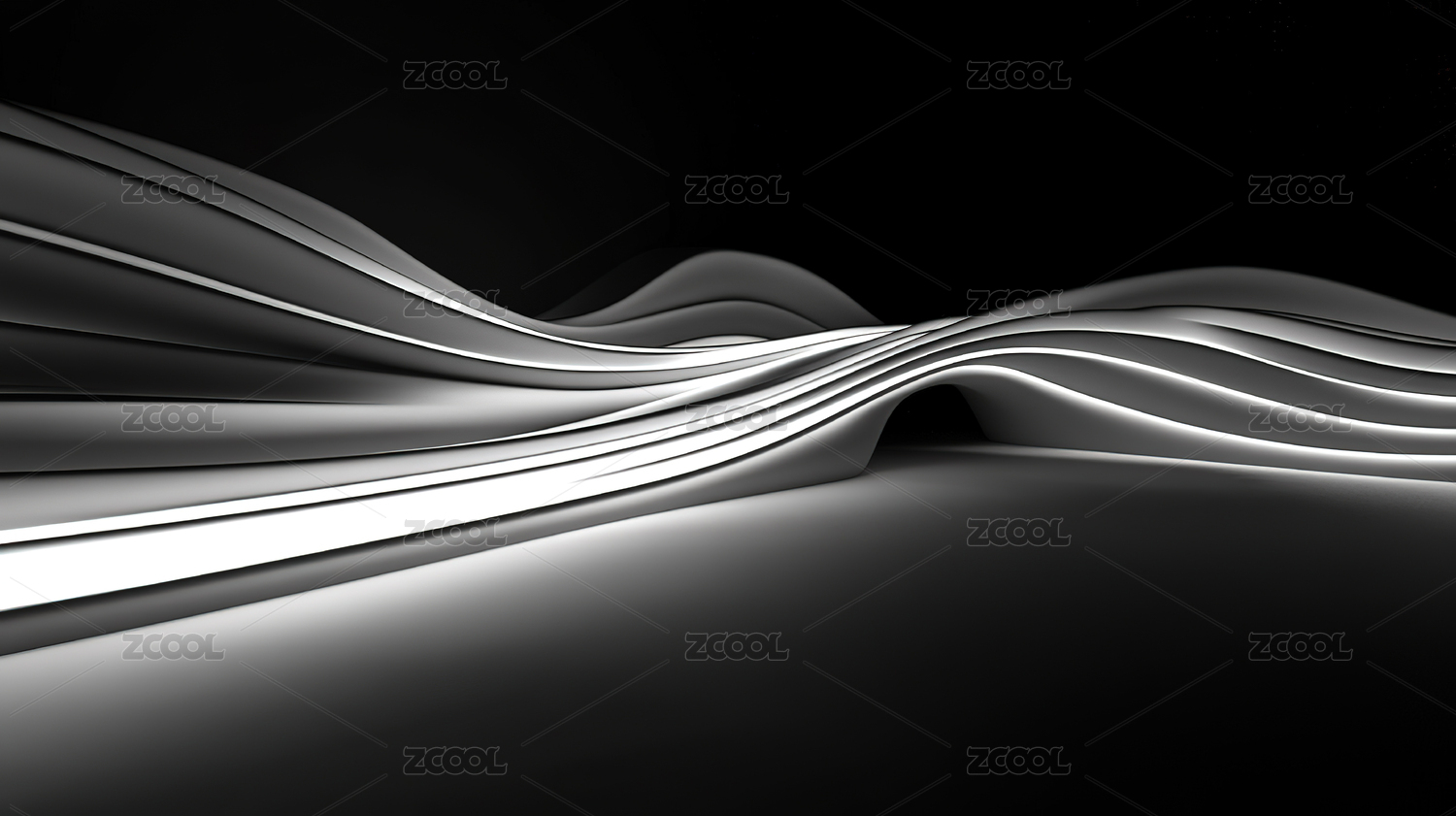 抽象波浪形状白色建筑与地板倒影3d渲染