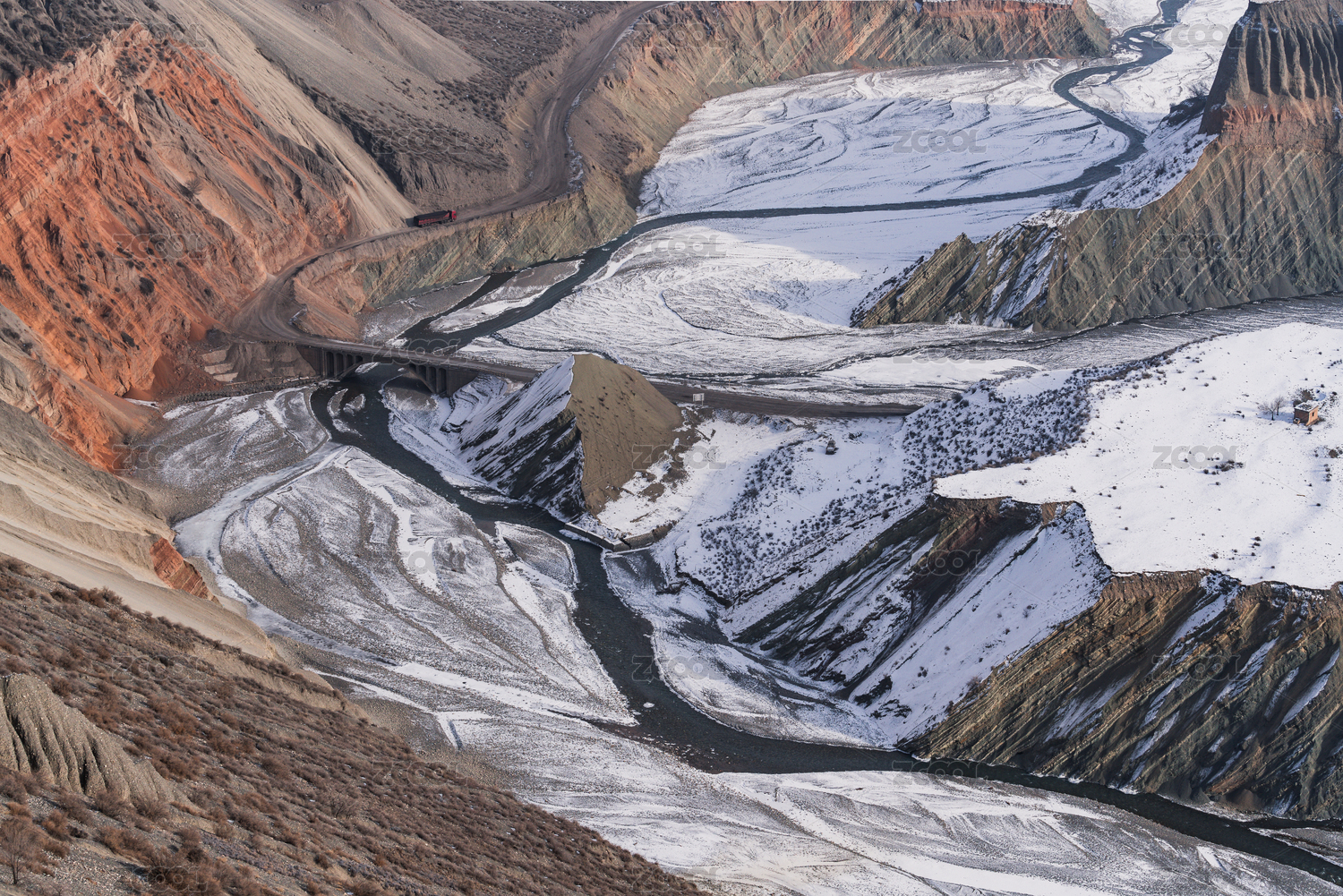 中国,新疆,塔城,沙湾,安集海大峡谷,安集海河,冬天,冬景,雪,线条