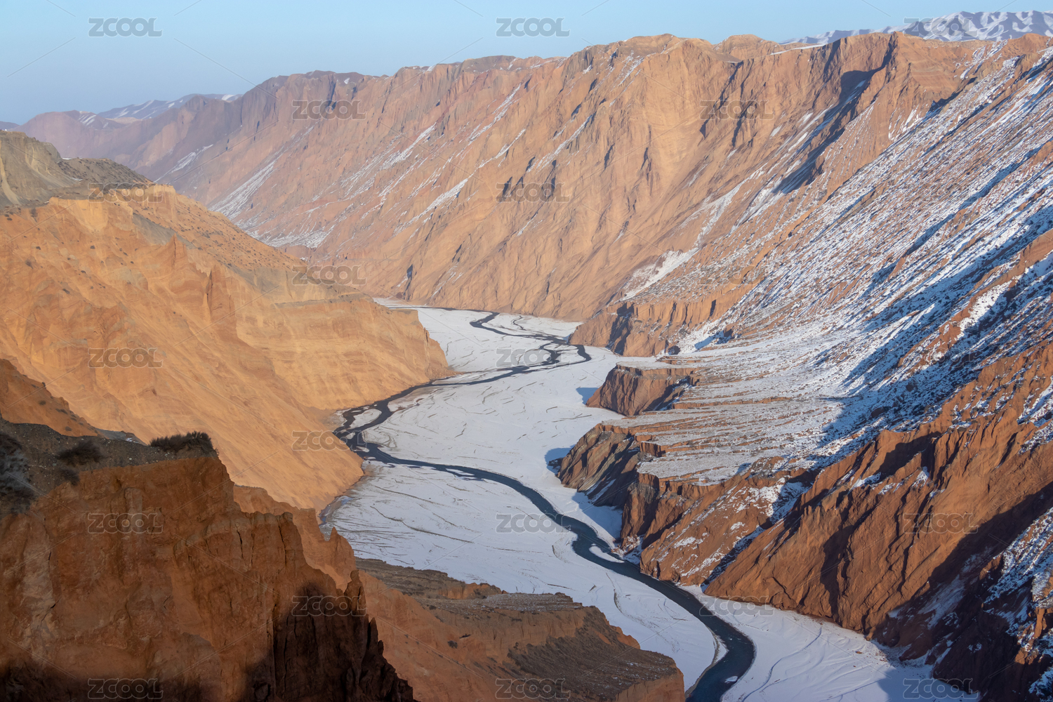 中国新疆伊犁州奎屯市安集海大峡谷雪景