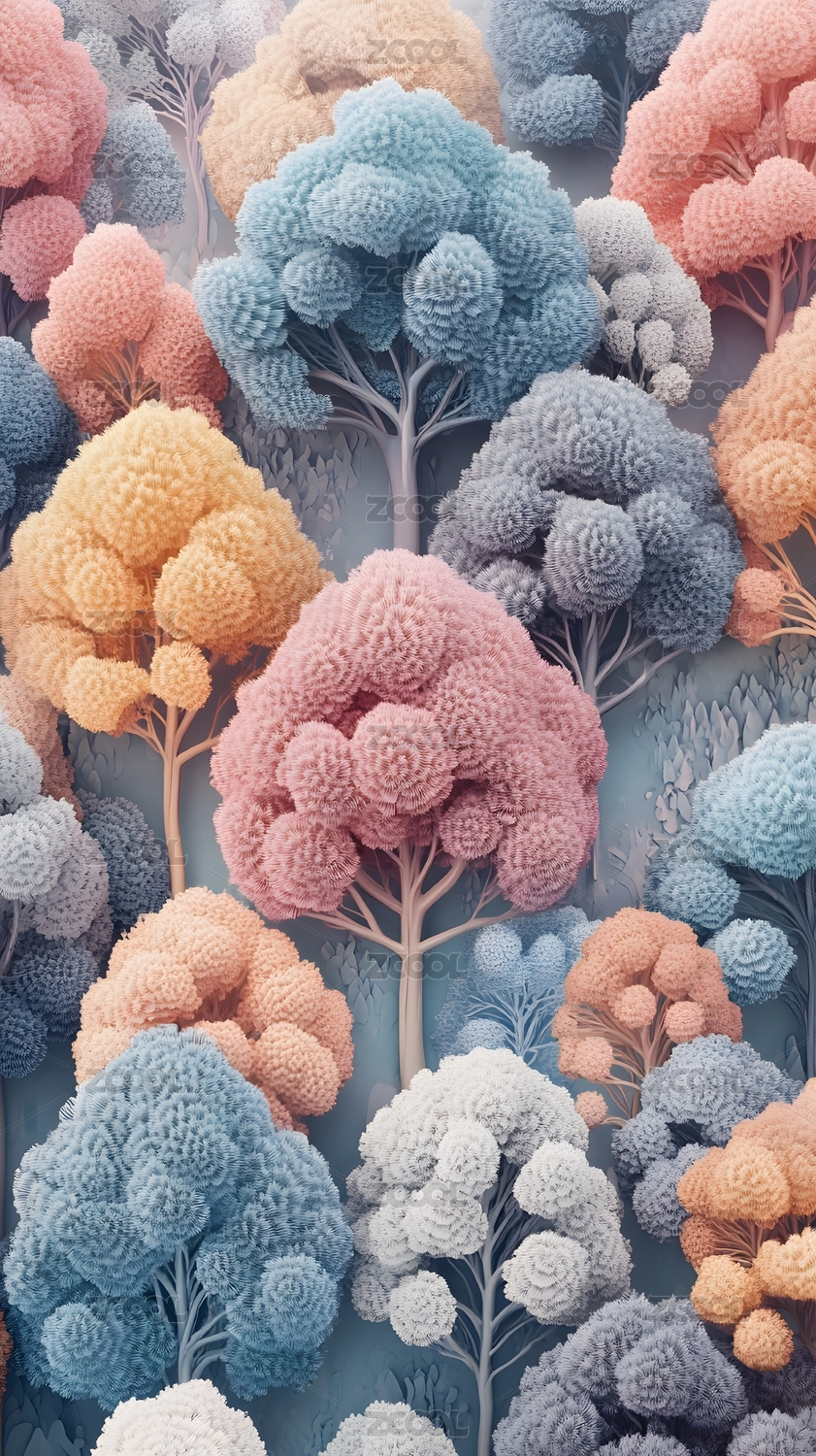 清新明亮羊毛毡毛绒山水风景3D卡通插画
