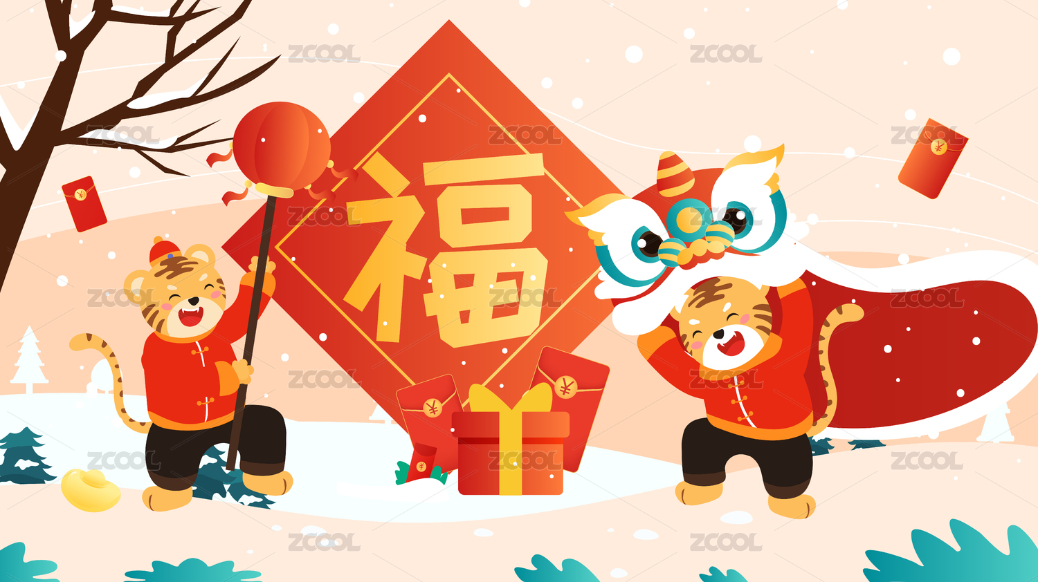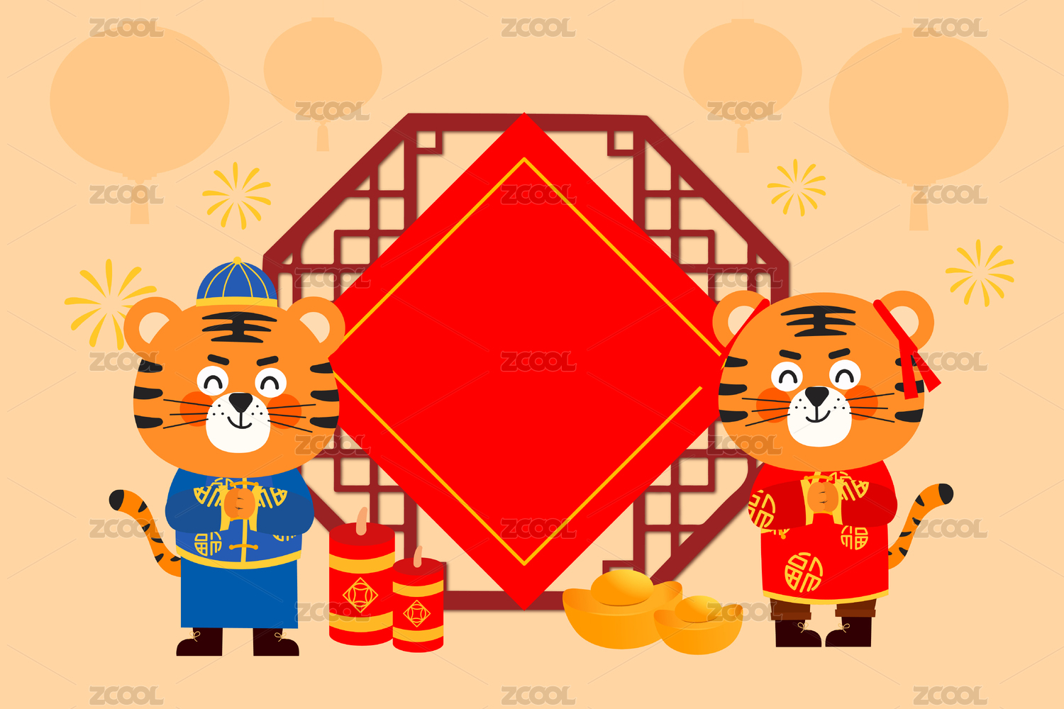 新春虎年可爱老虎恭贺新年国潮矢量插画