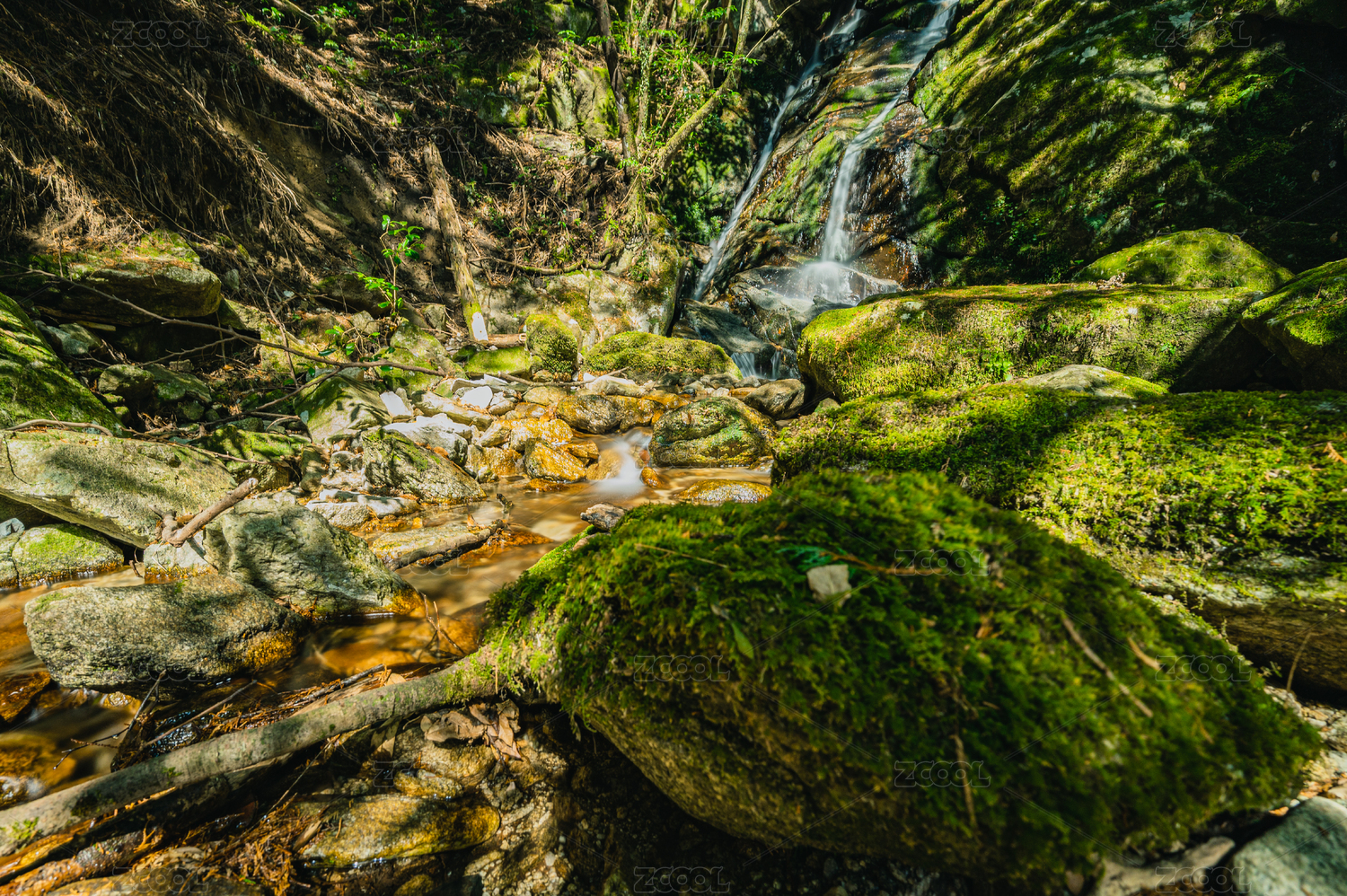 山林间流淌下的泉水