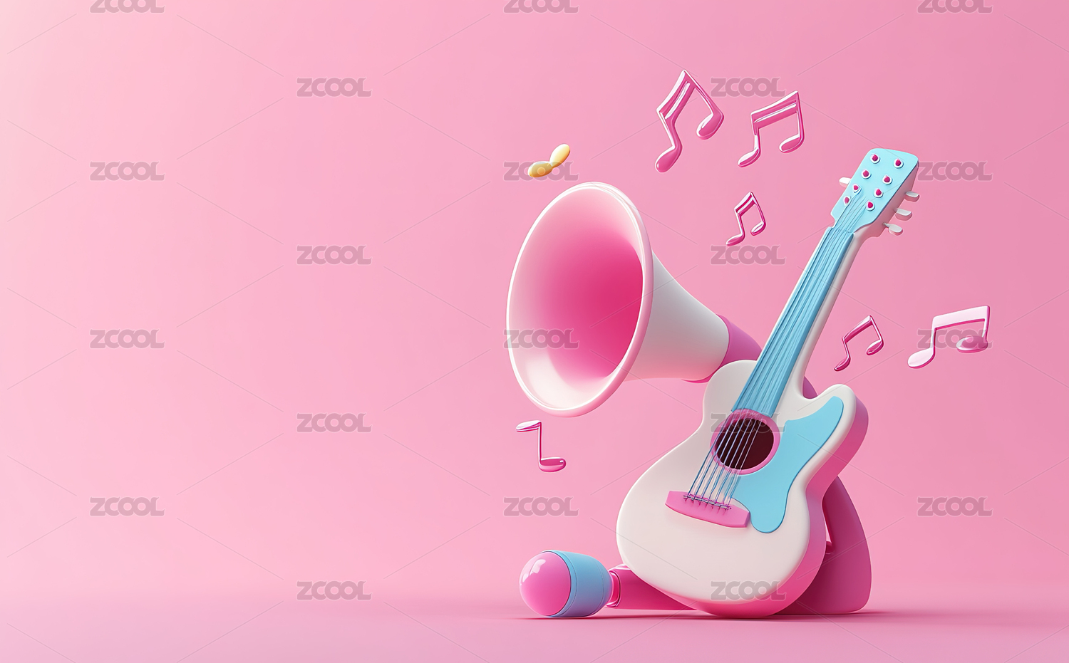 一把3D音乐电吉他和音符