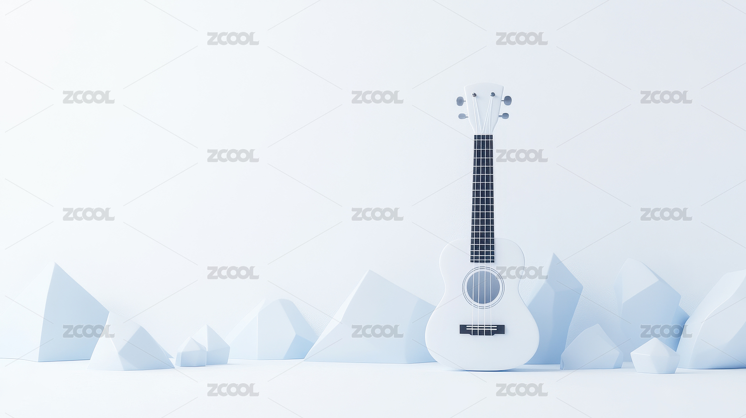极简白色场景中的木吉他