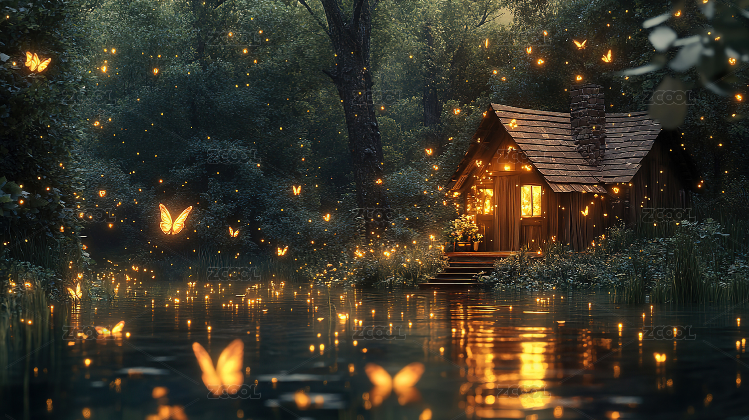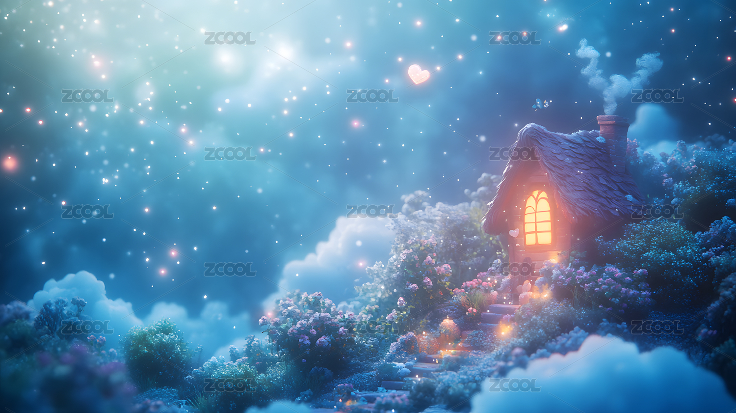 灯光,温馨,宁静,自然,夜晚,梦幻,艺术,户外,冬季,小屋