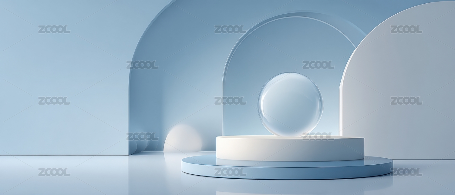 极简主义蓝色几何空间展示
