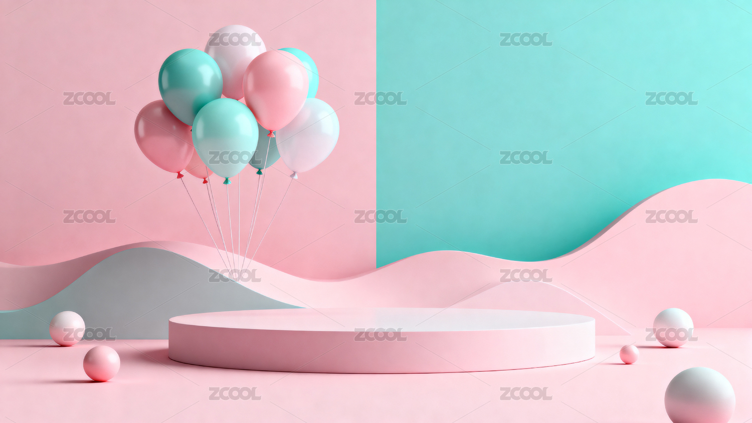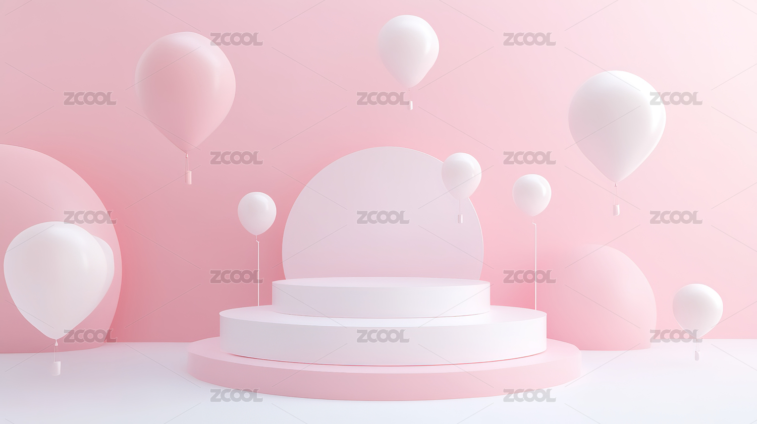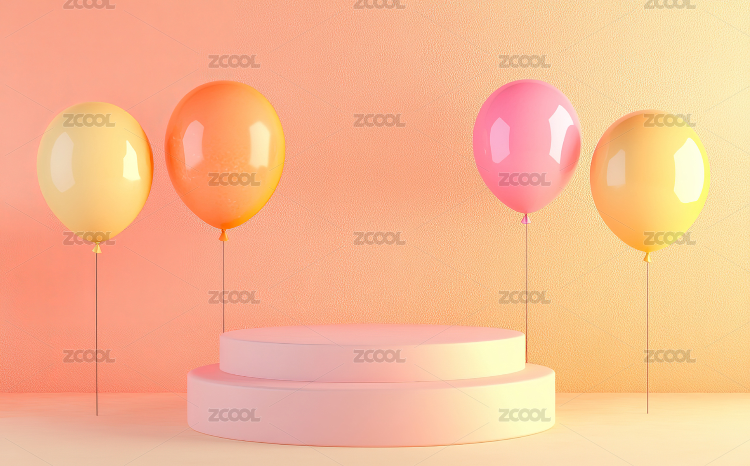 白色,装饰,3D渲染,圆形,橙色,云朵,梦幻,蓝色,背景,气球