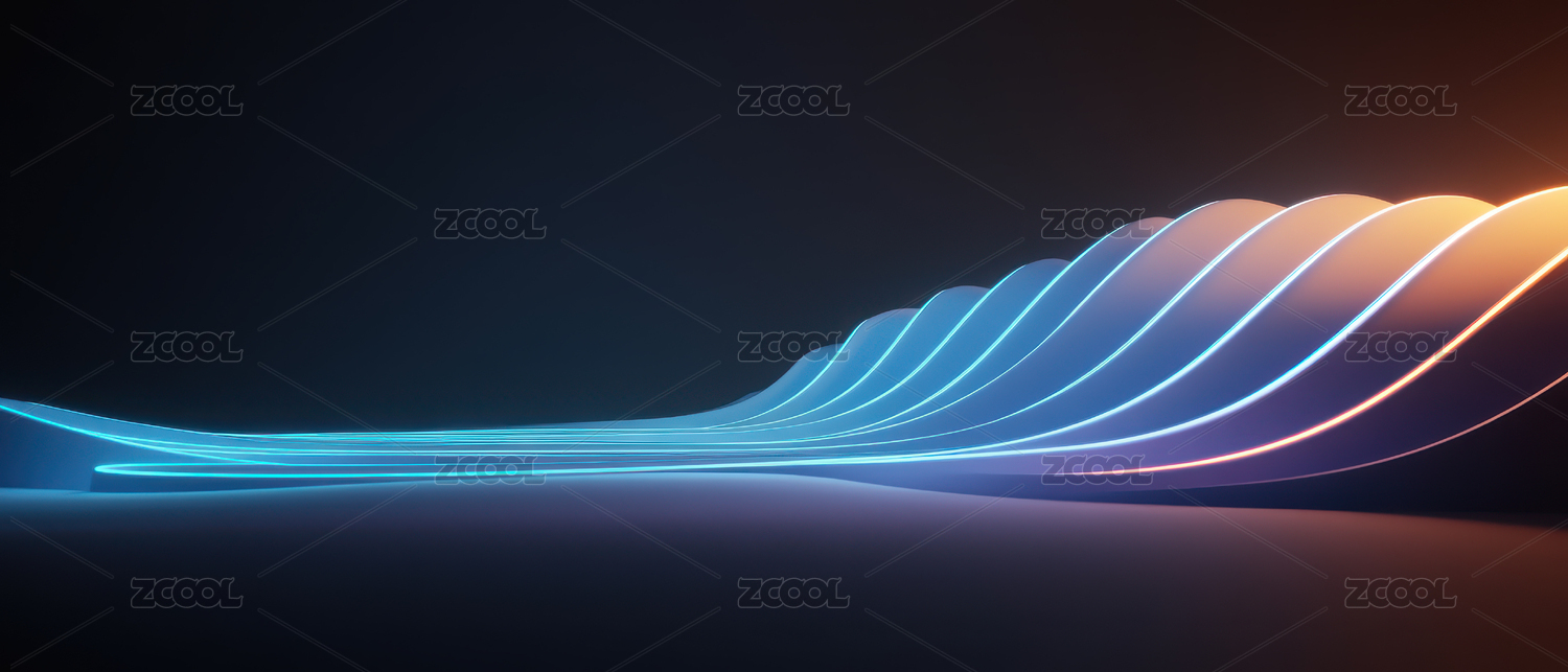 抽象霓虹灯发光几何线条3D渲染商务背景