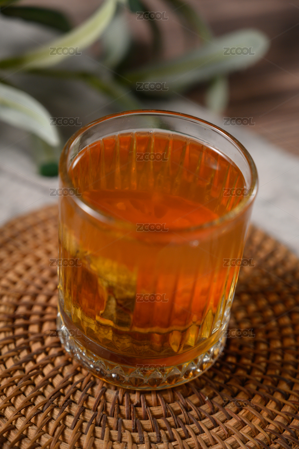 桌面上的杯子里的甘甜可口的玉兰花茶