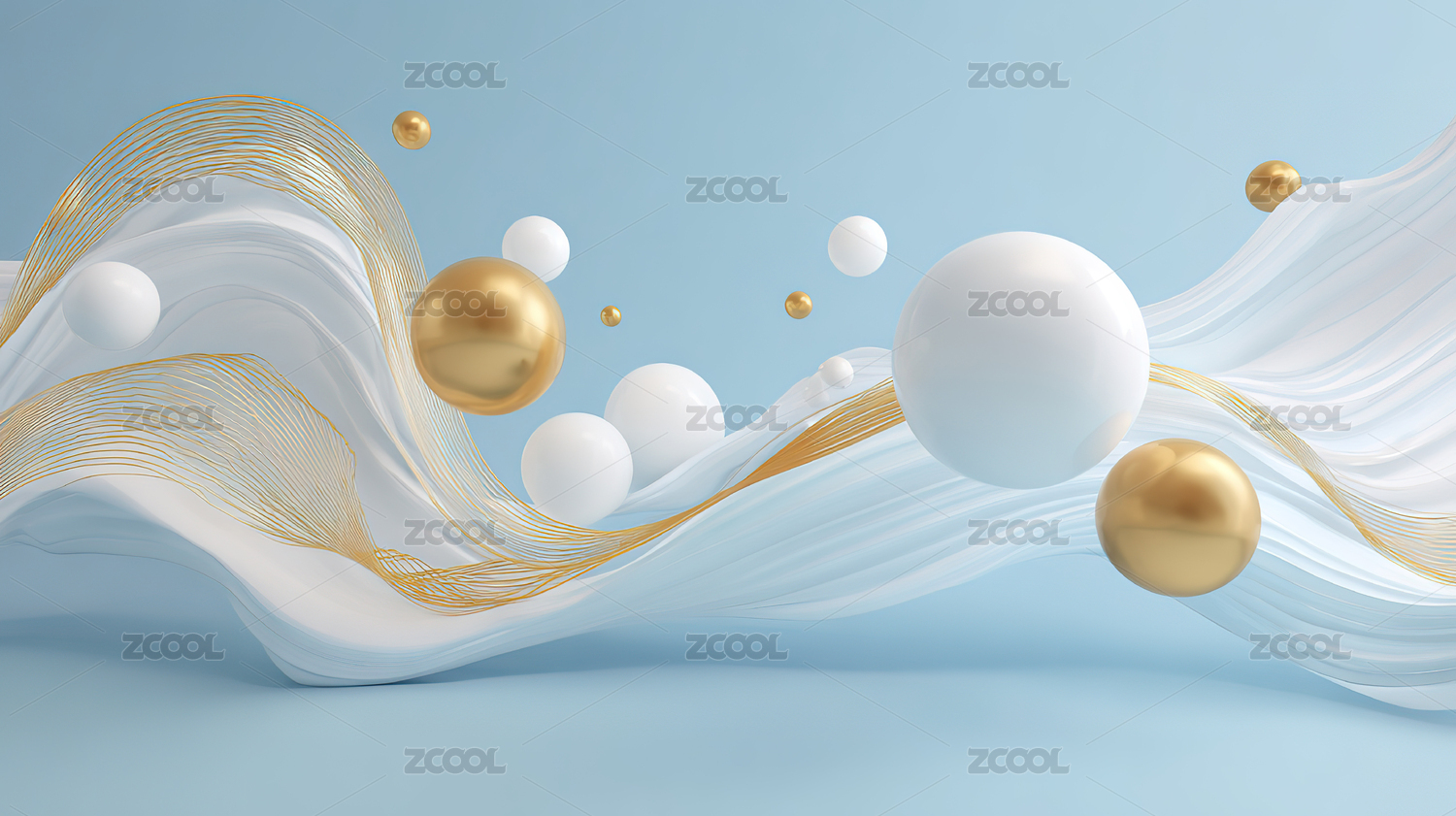 金色球体与流动布料